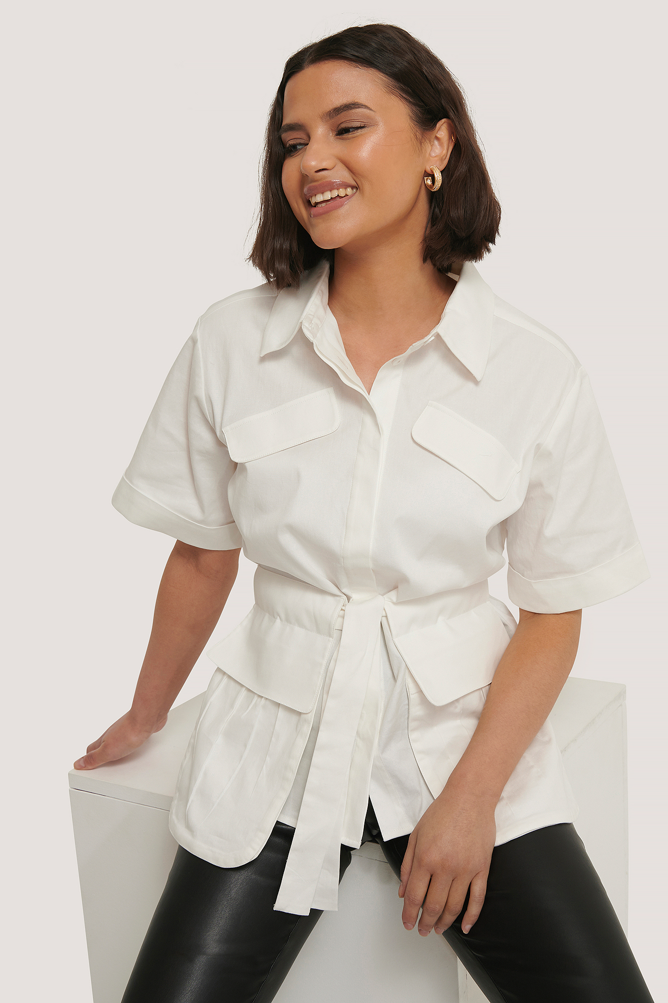 white shirt with front pocket