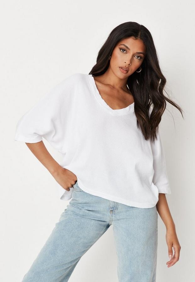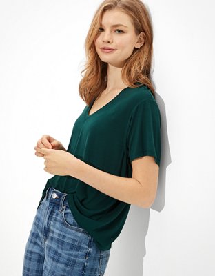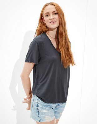 womens oversized v neck tee
