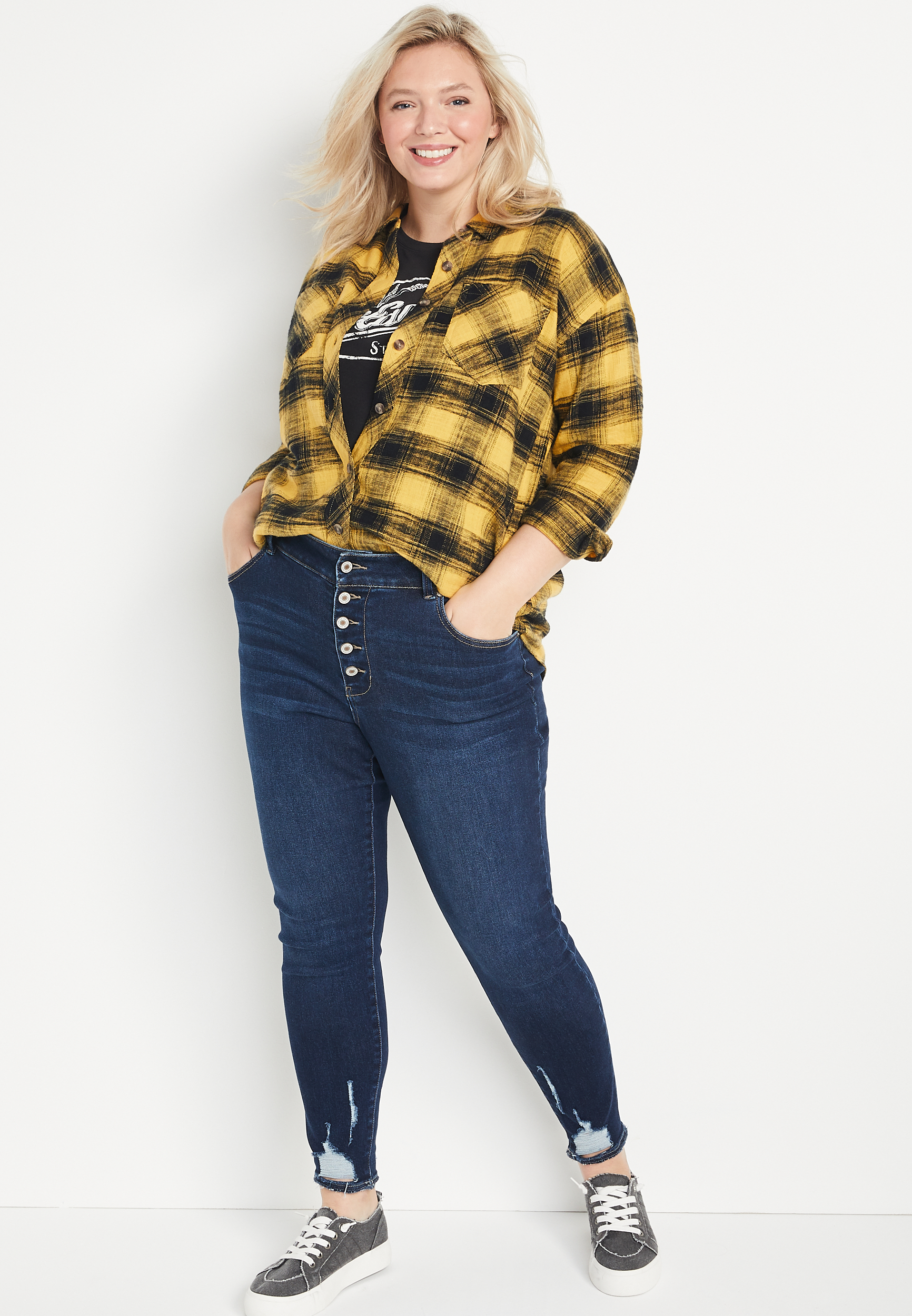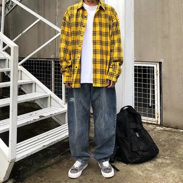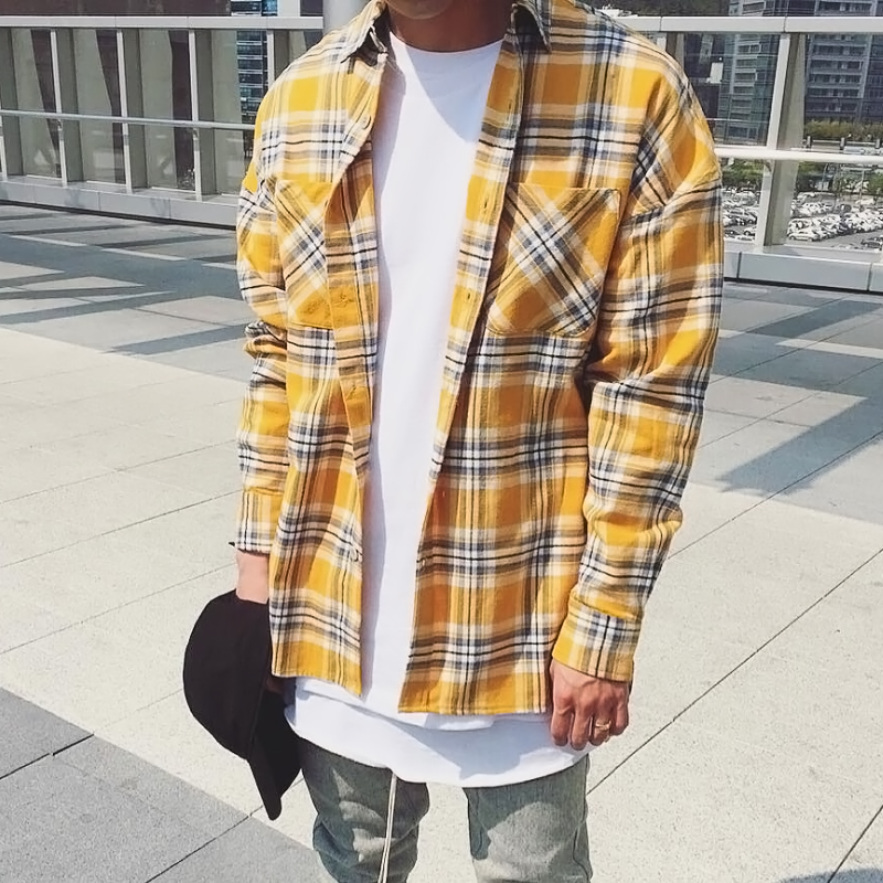 yellow oversized flannel