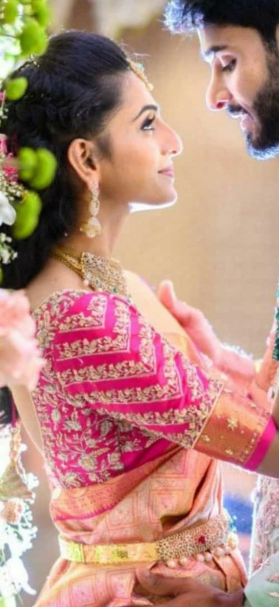 aari work blouse pink colour
