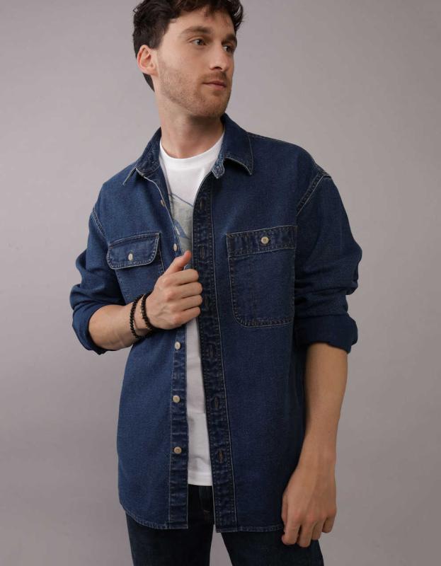 ae oversized flannel button up shirt jacket