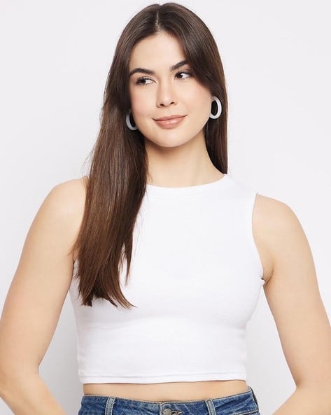 all white crop top