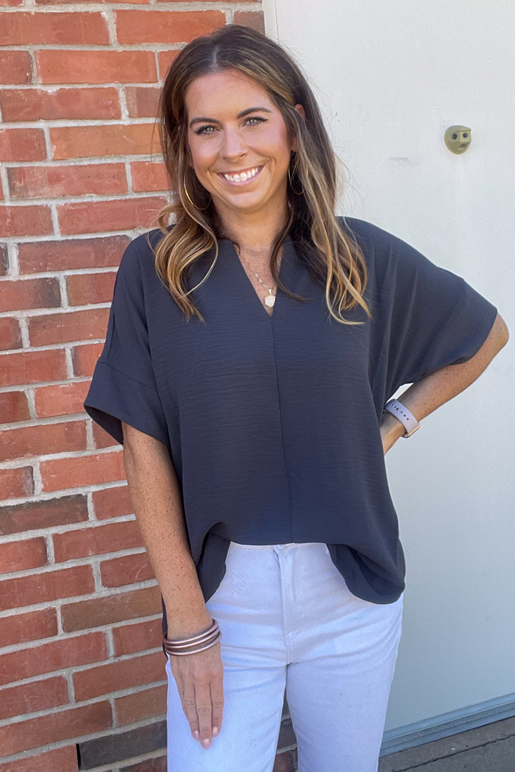 alvena split neck blouse