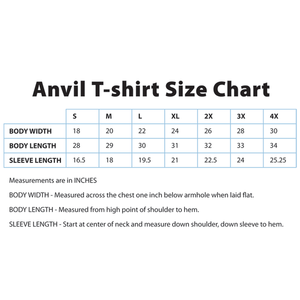 anvil shirt size chart