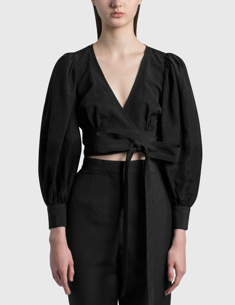 balloon sleeve wrap blouse