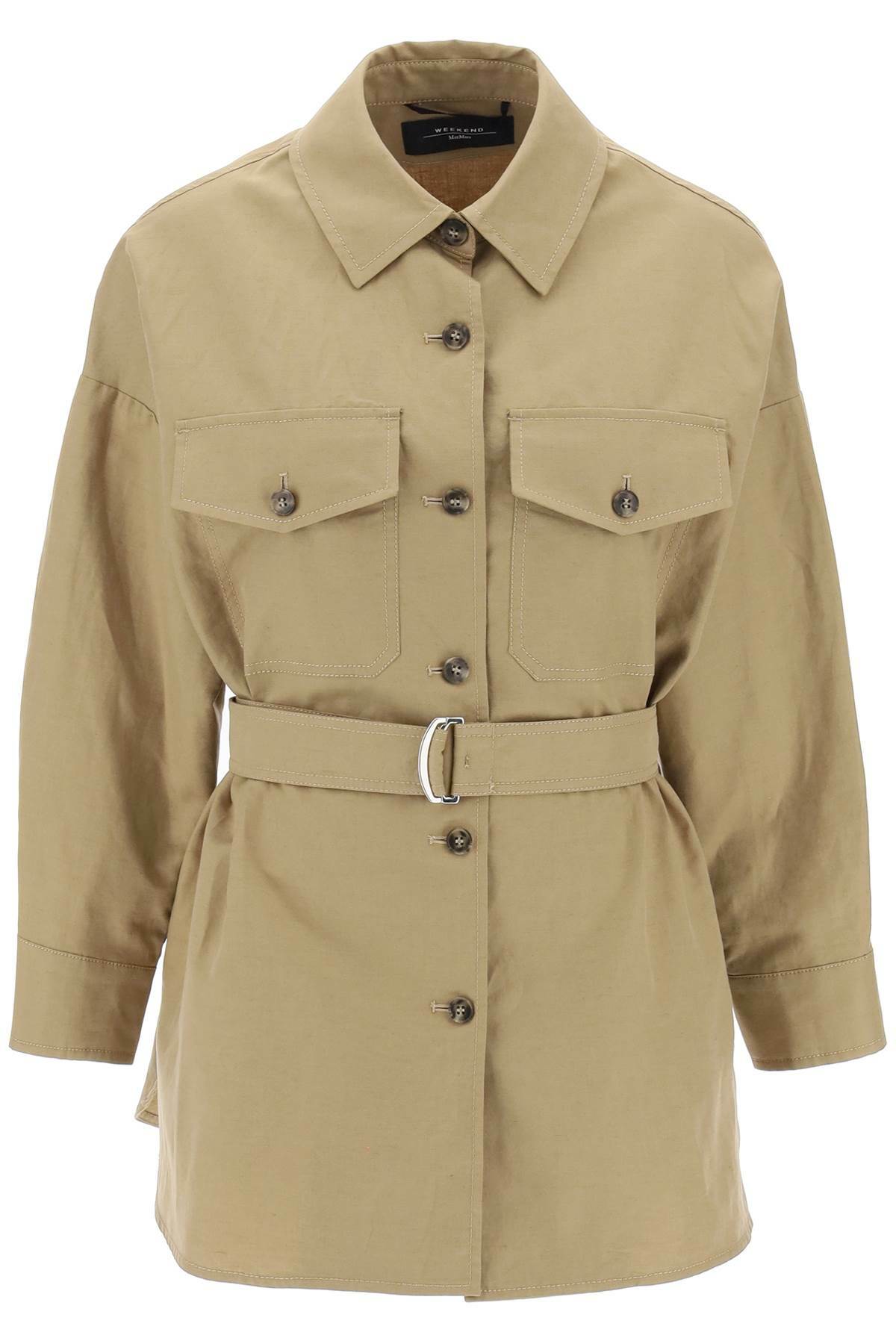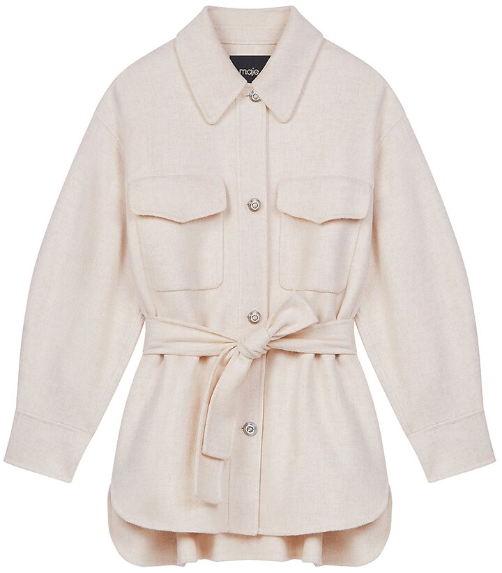 beige belted overshirt