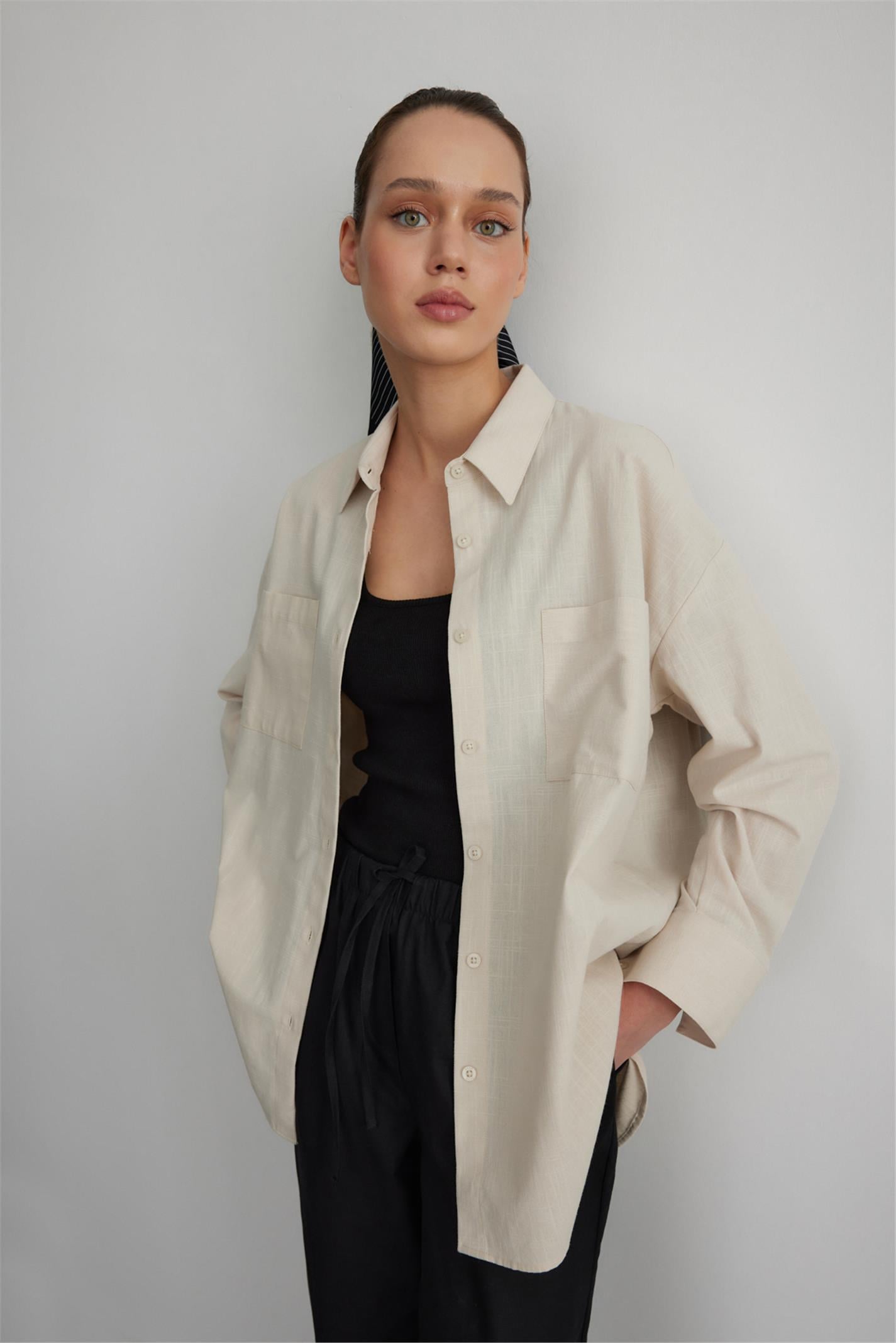 beige oversized blouse