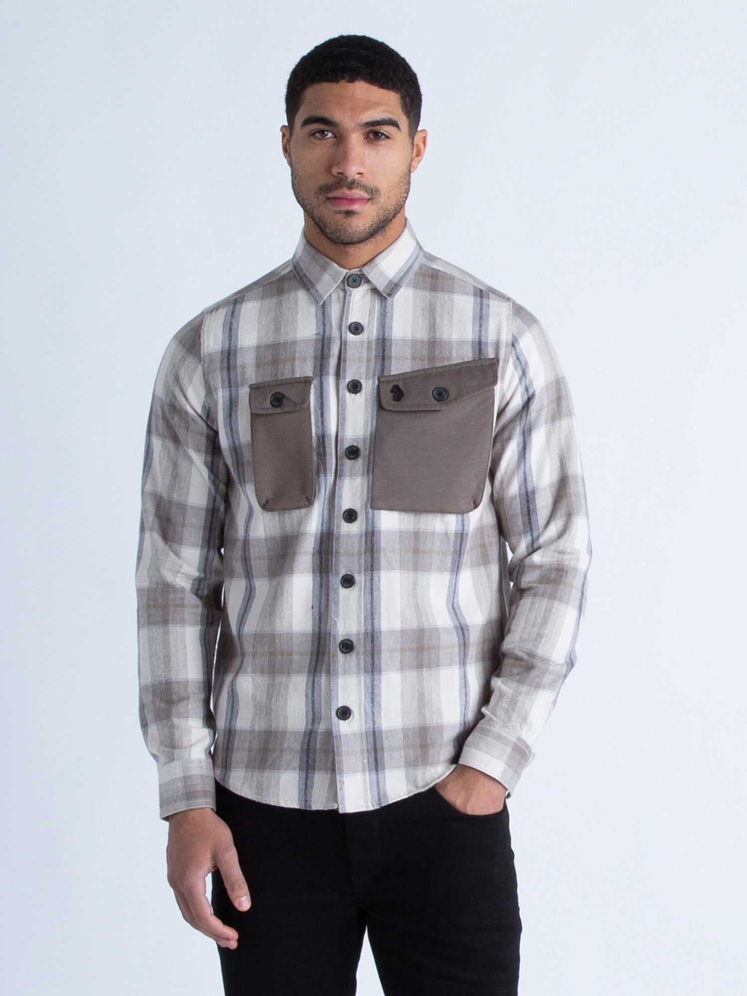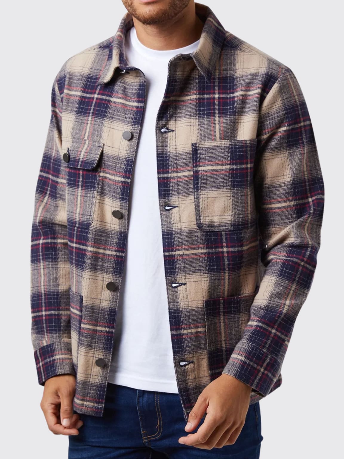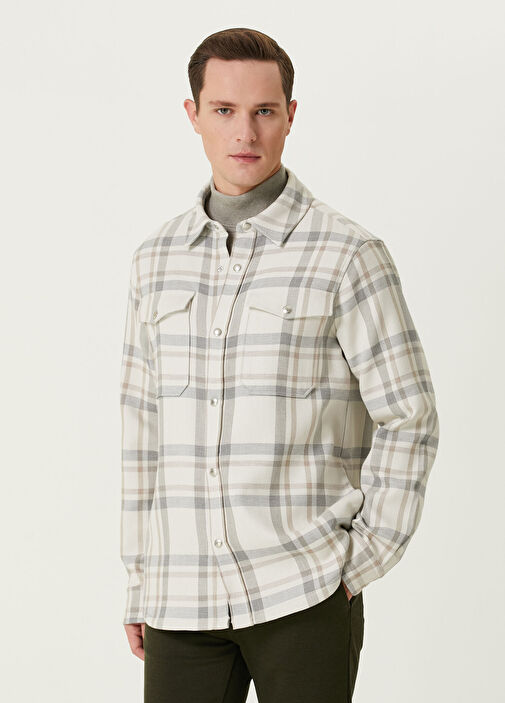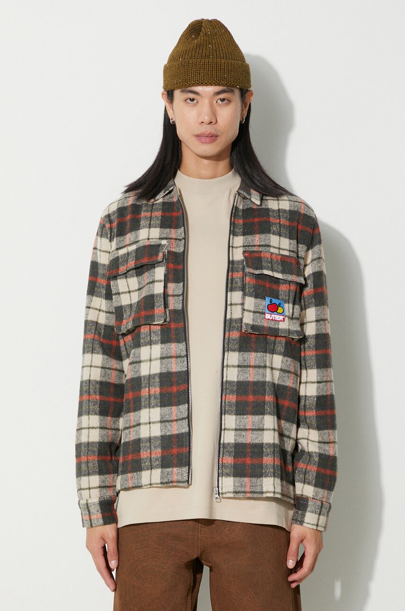 beige plaid overshirt