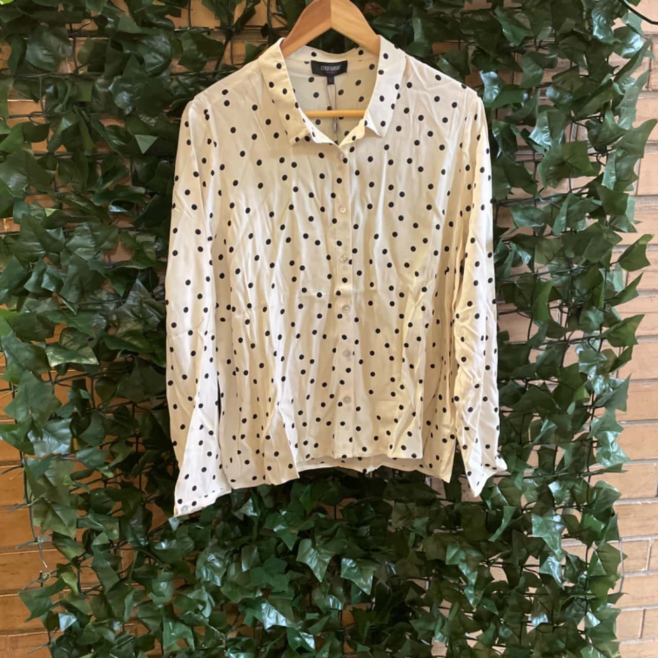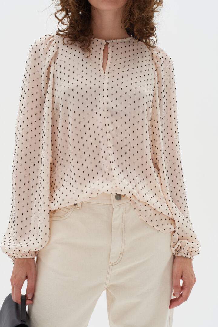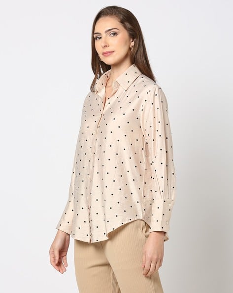 beige polka dot blouse