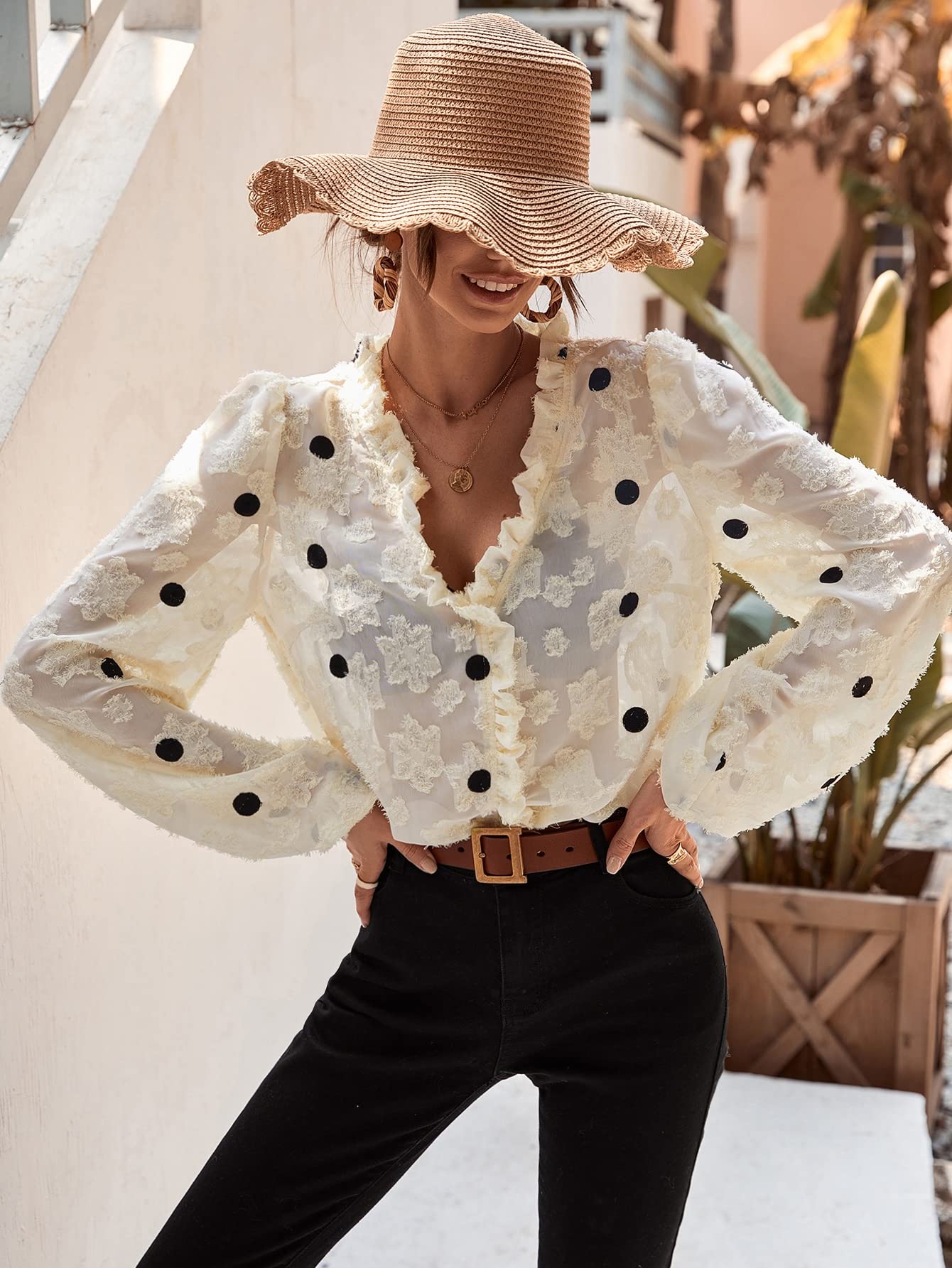 beige polka dot top