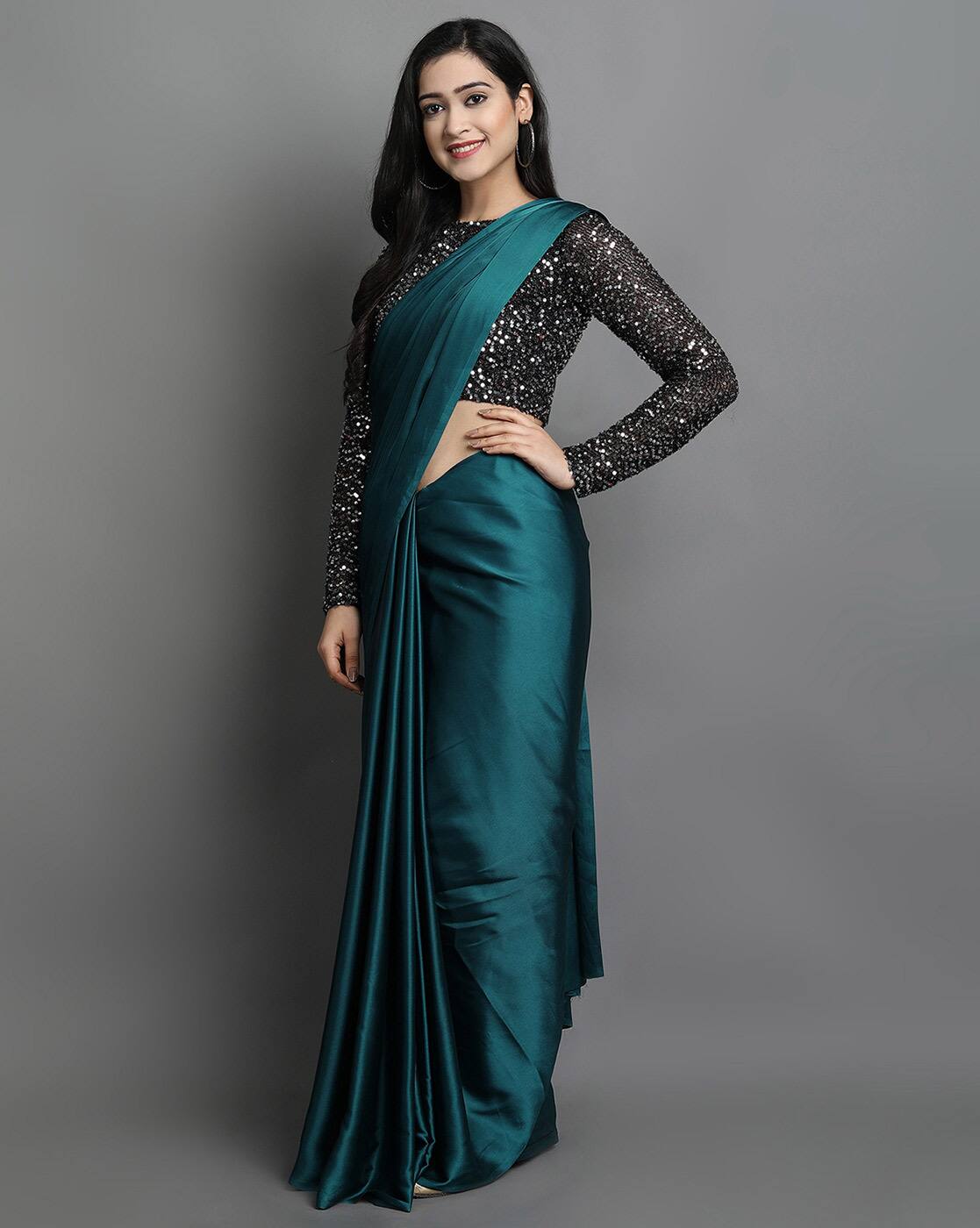 black blouse blue saree