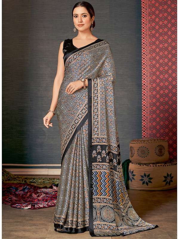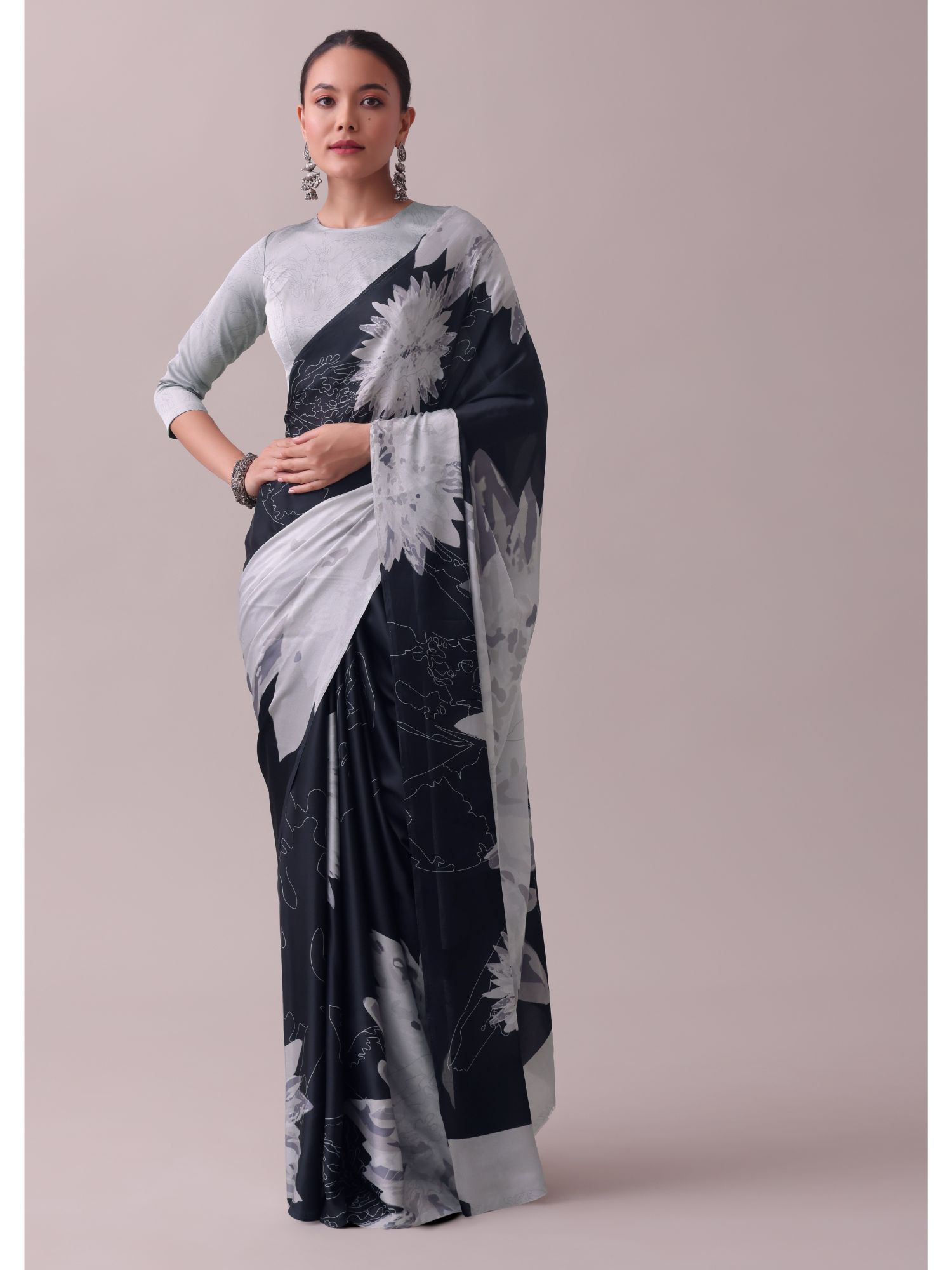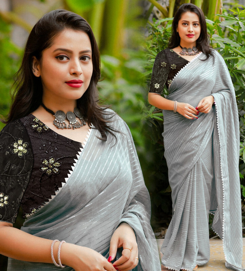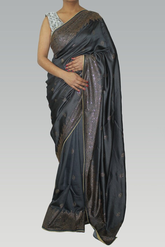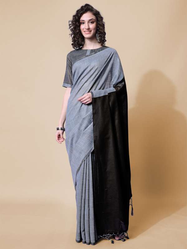 black blouse with grey saree