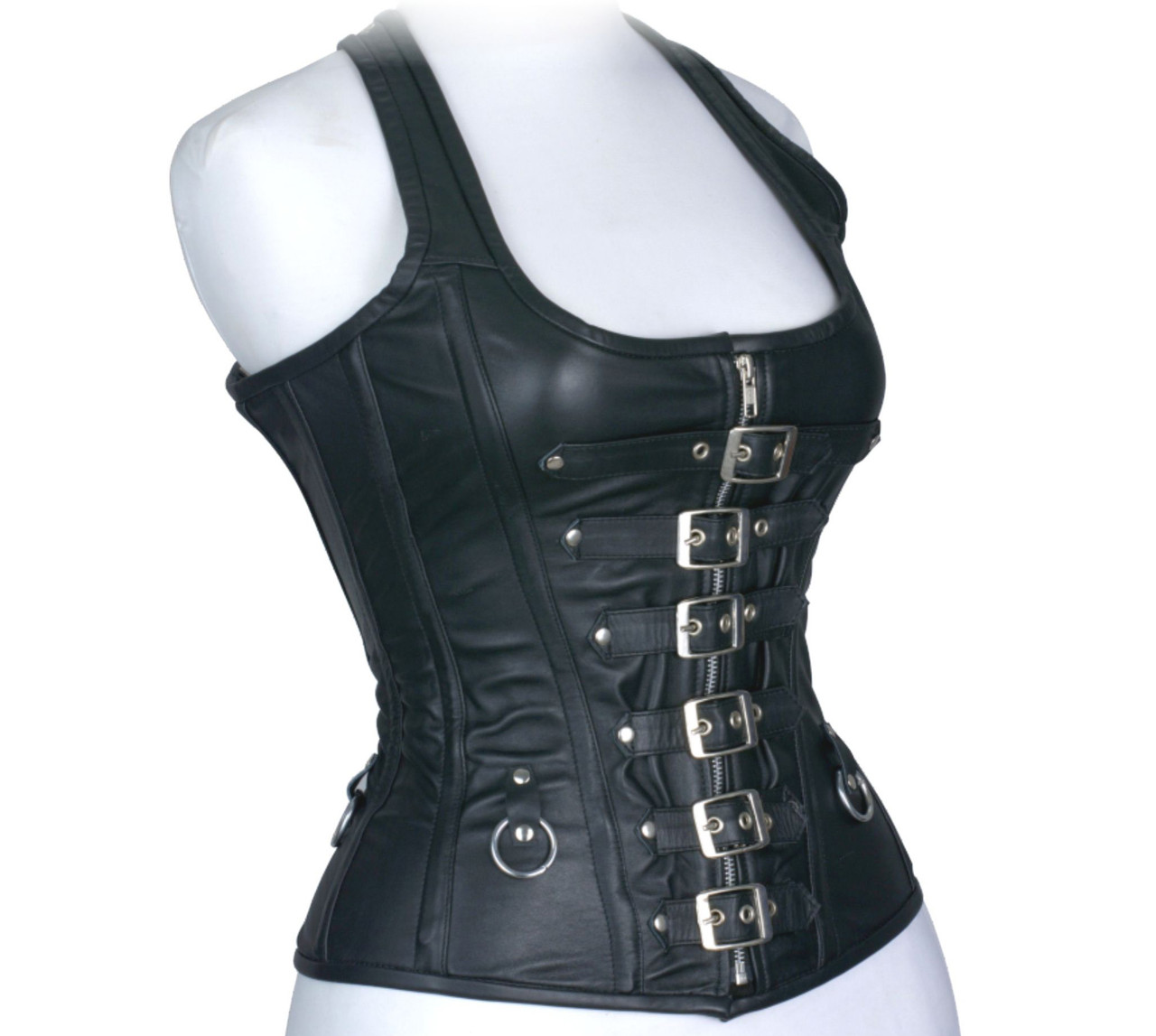 black bustier top with straps