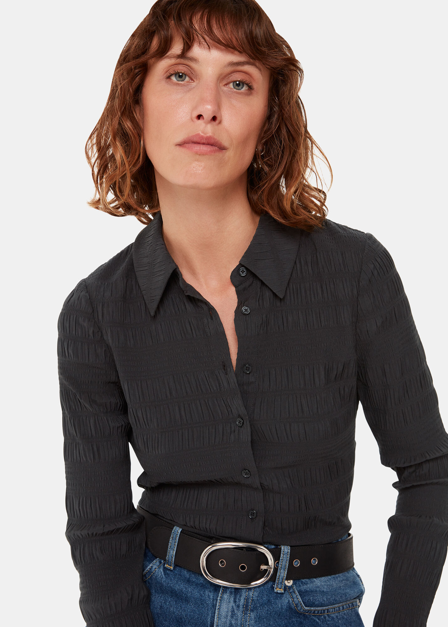 black button front top