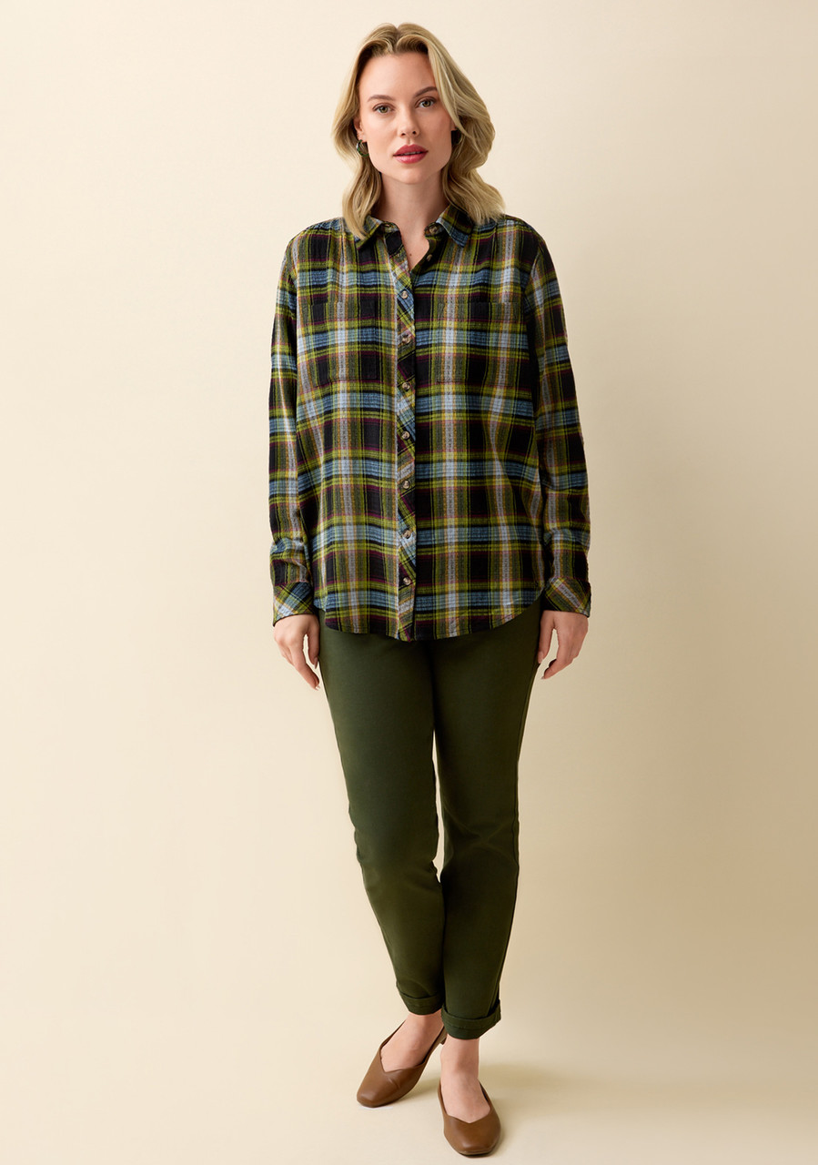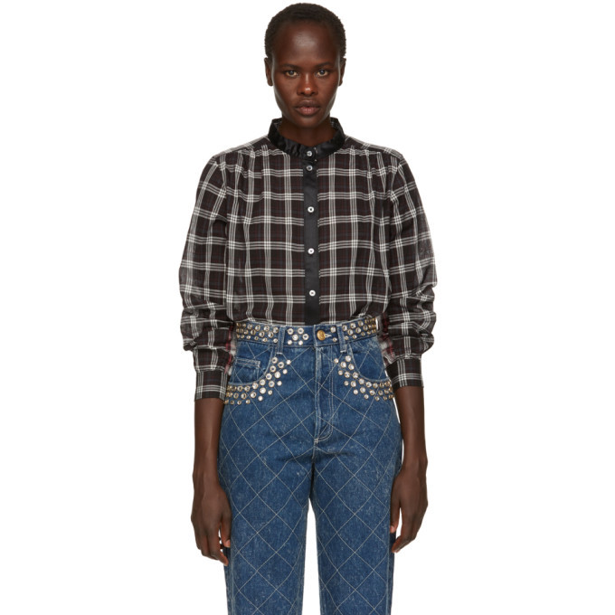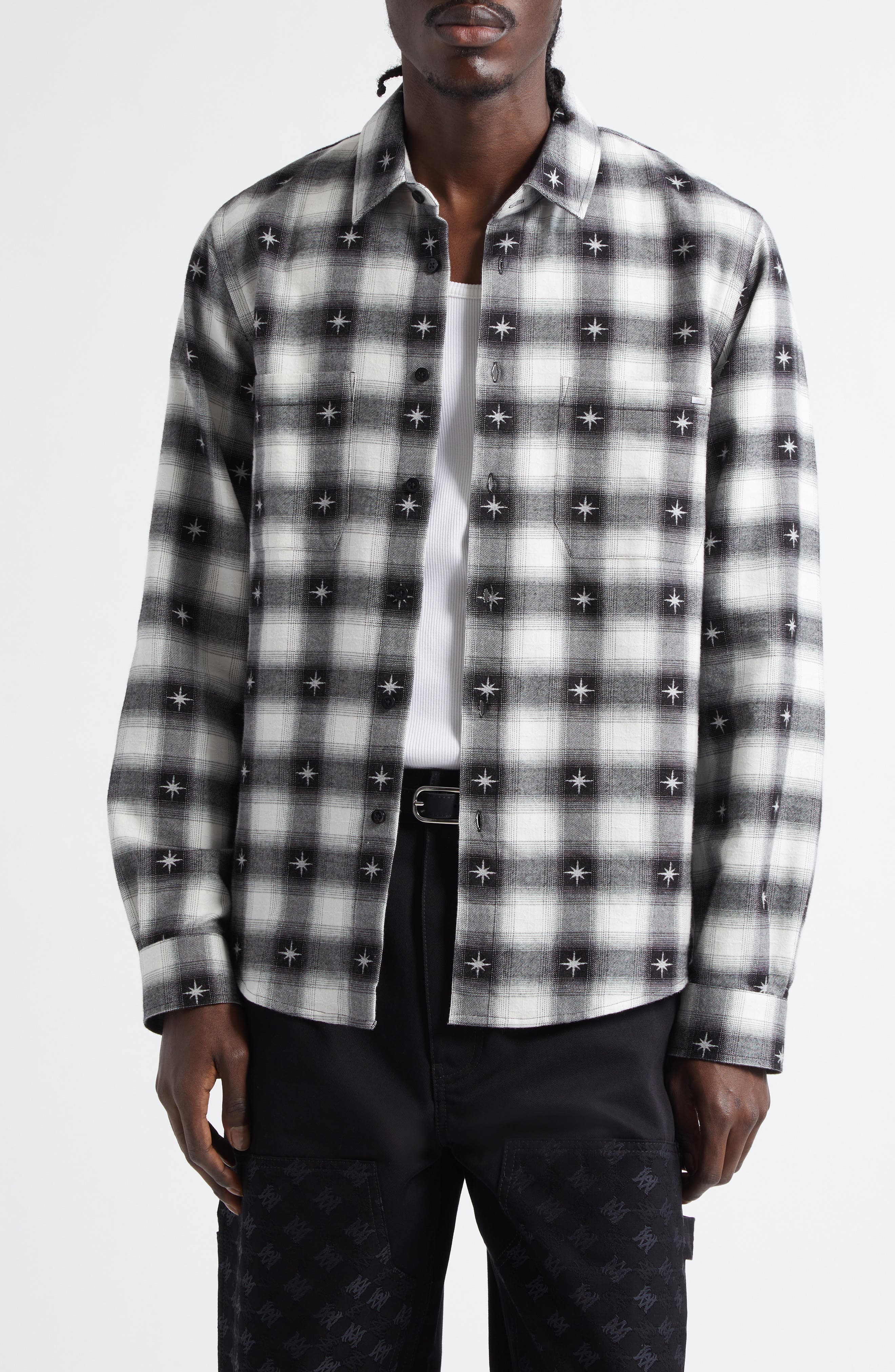 black checkered button up