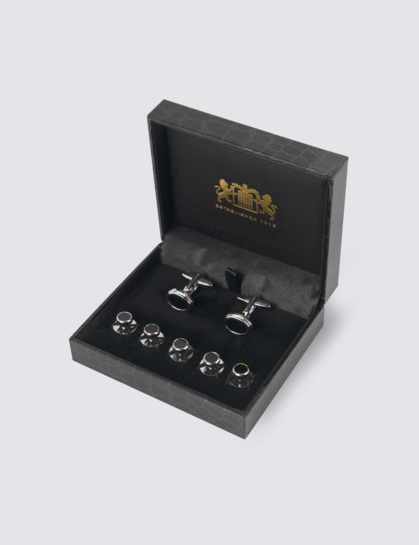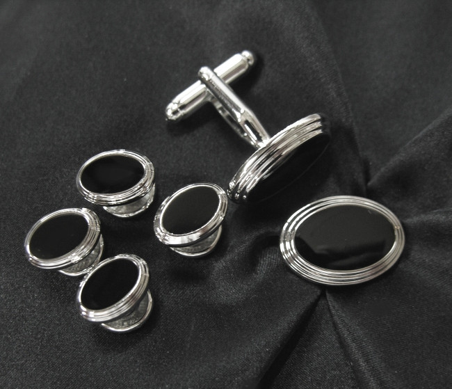 black cufflinks and studs