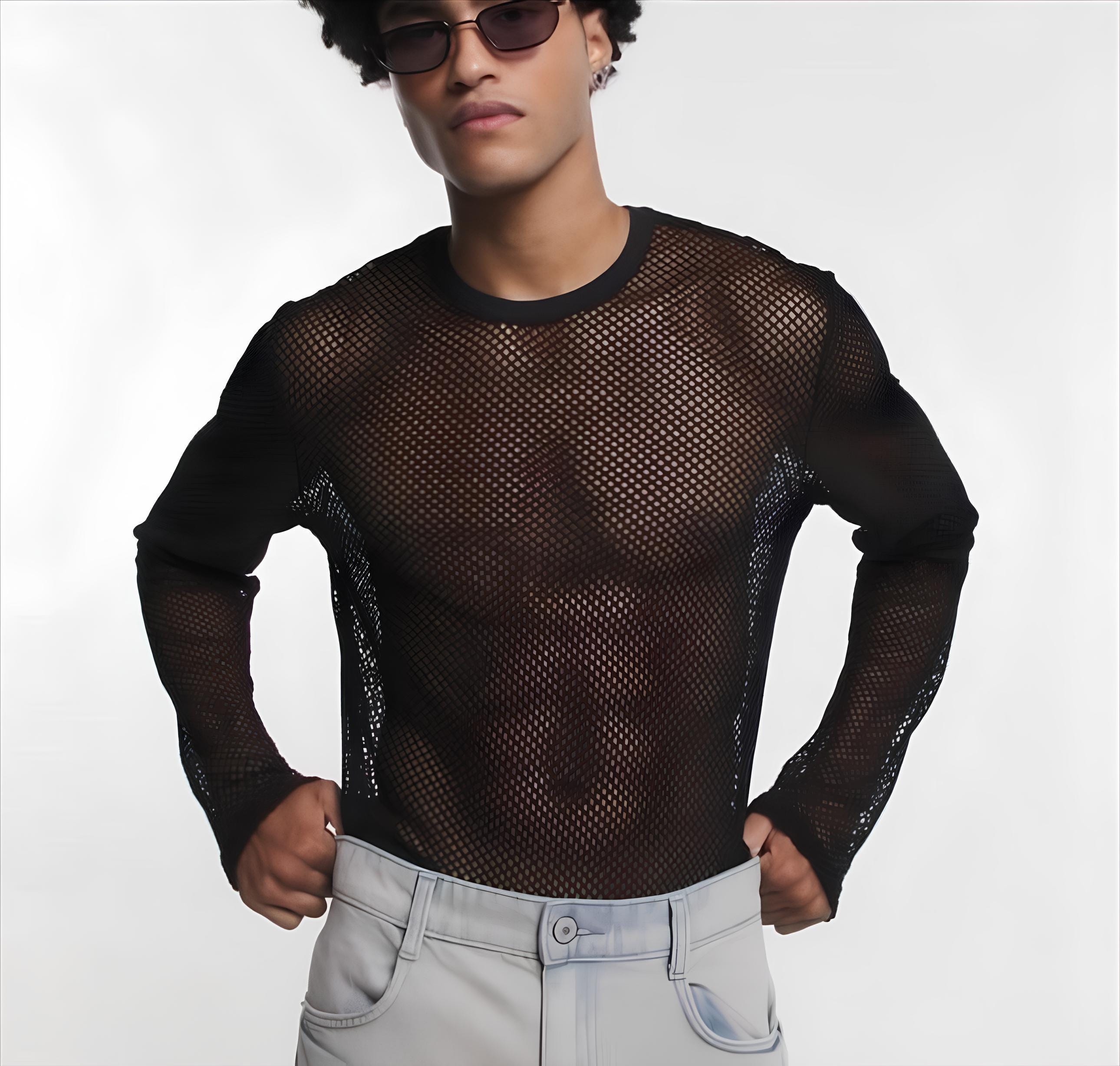 black fishnet long sleeve top
