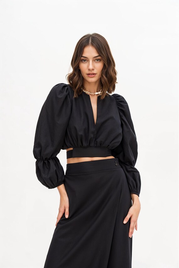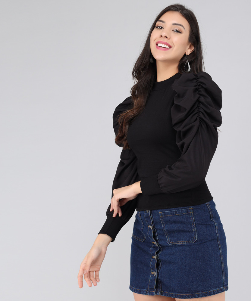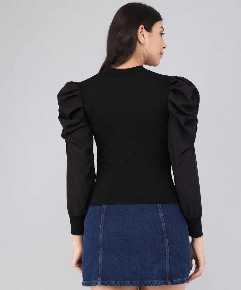 black fluffy sleeve top