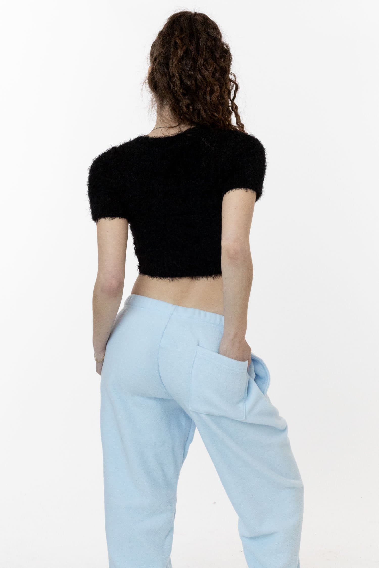 black fuzzy crop top