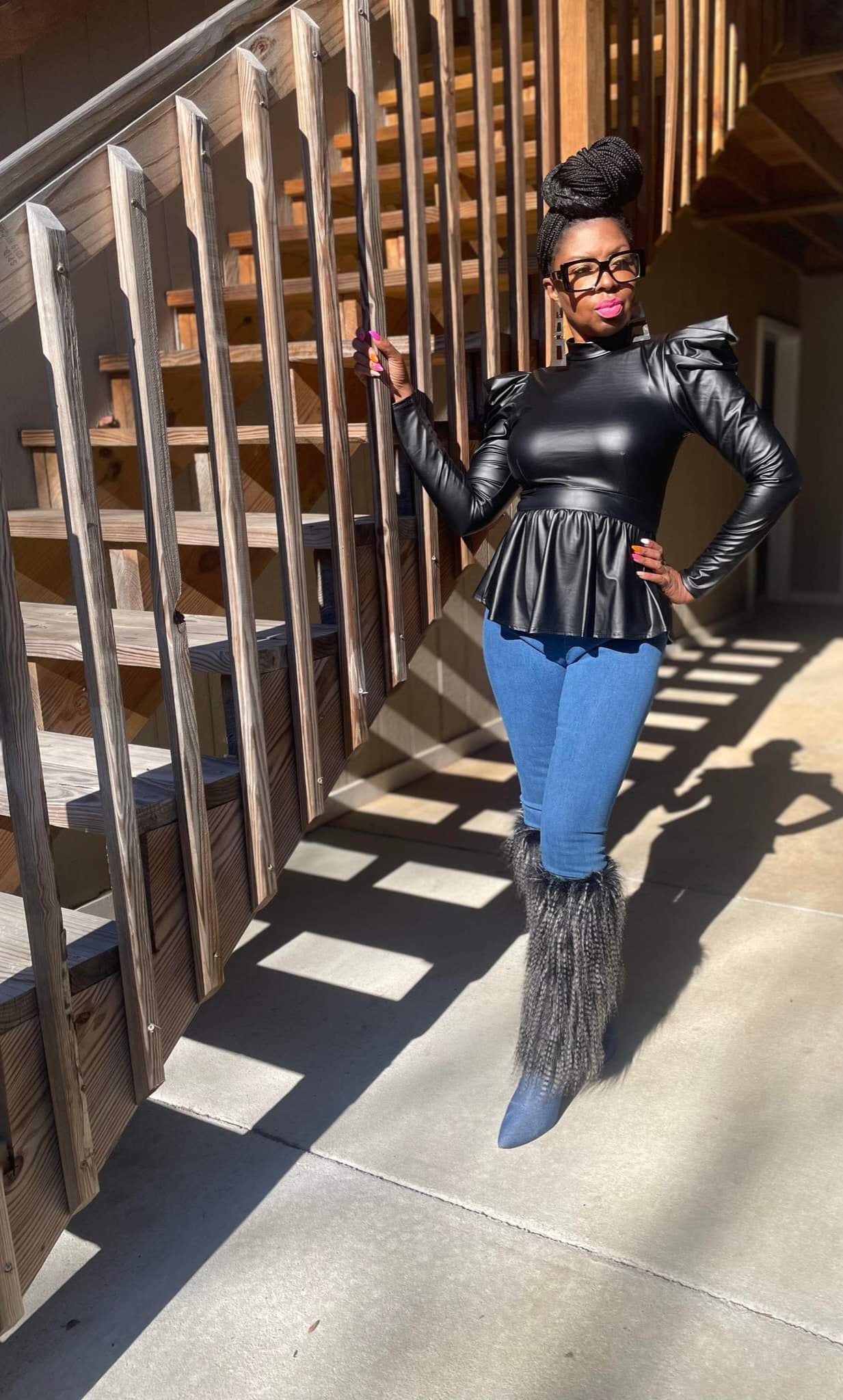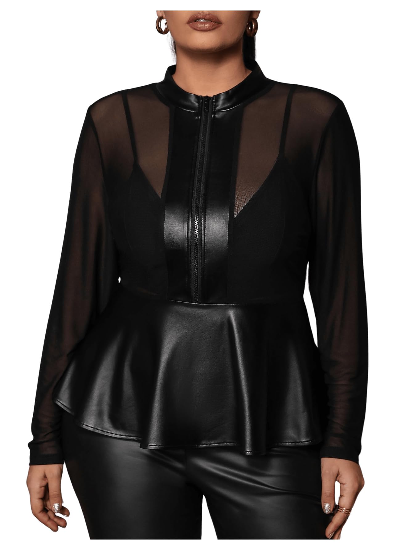 black leather peplum top