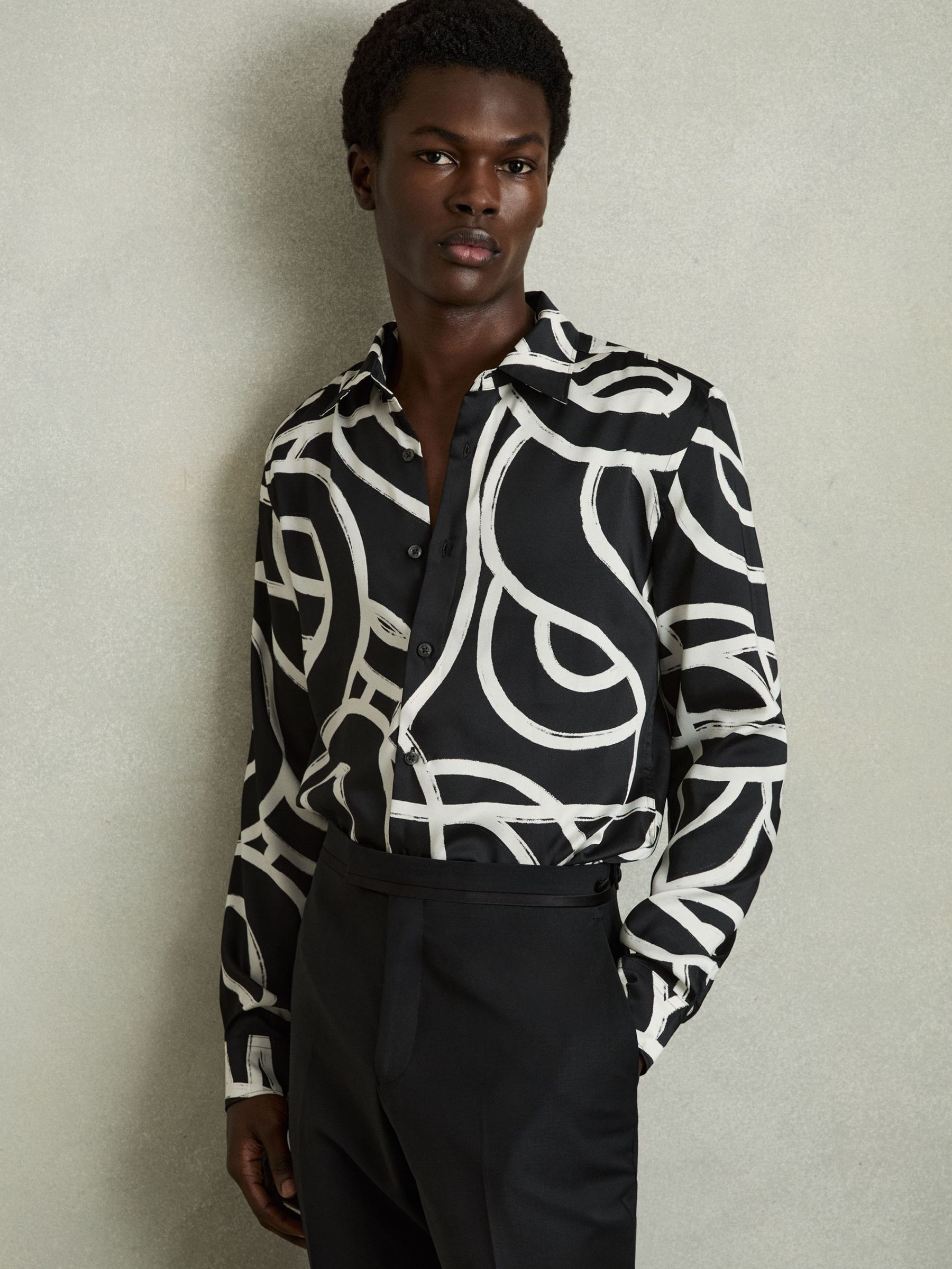 black pattern shirt