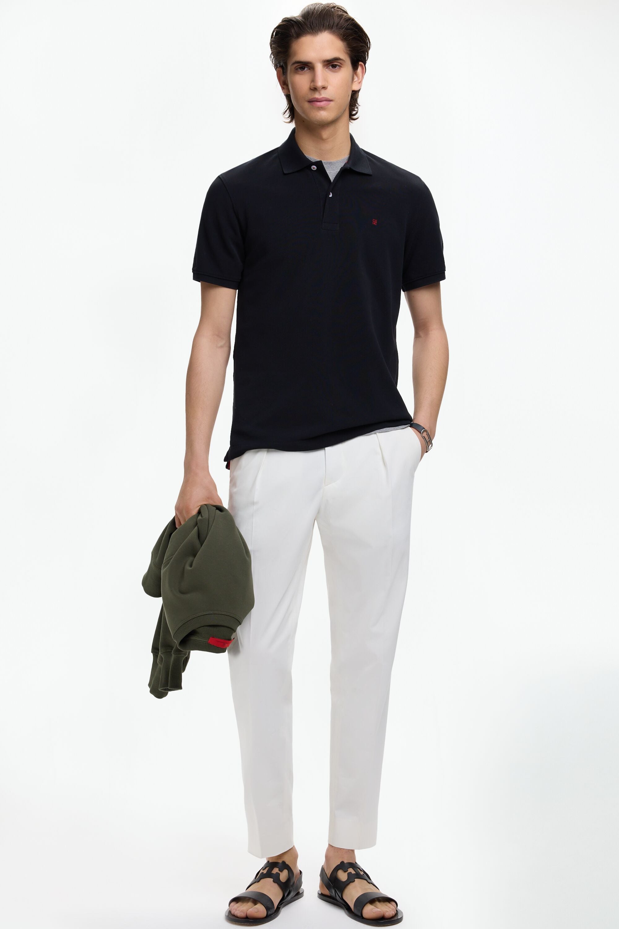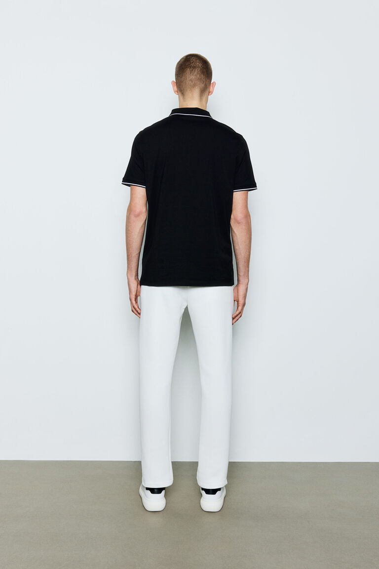black polo white pants