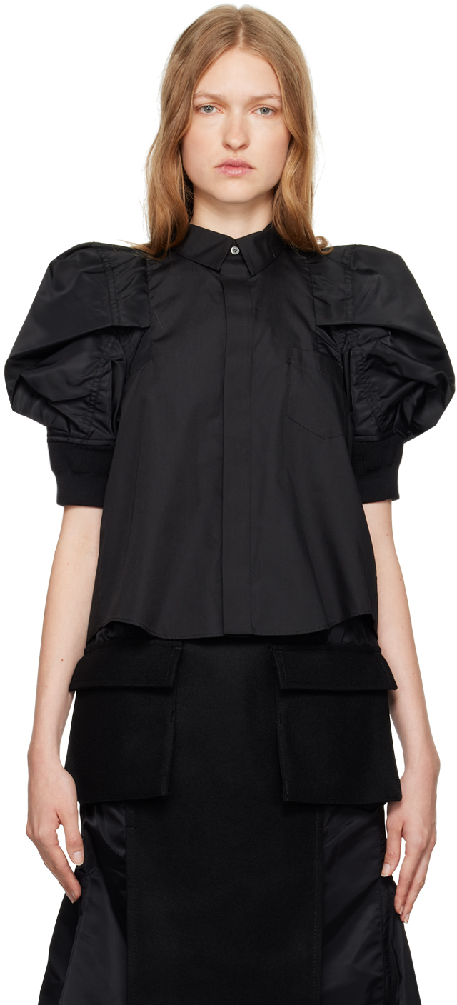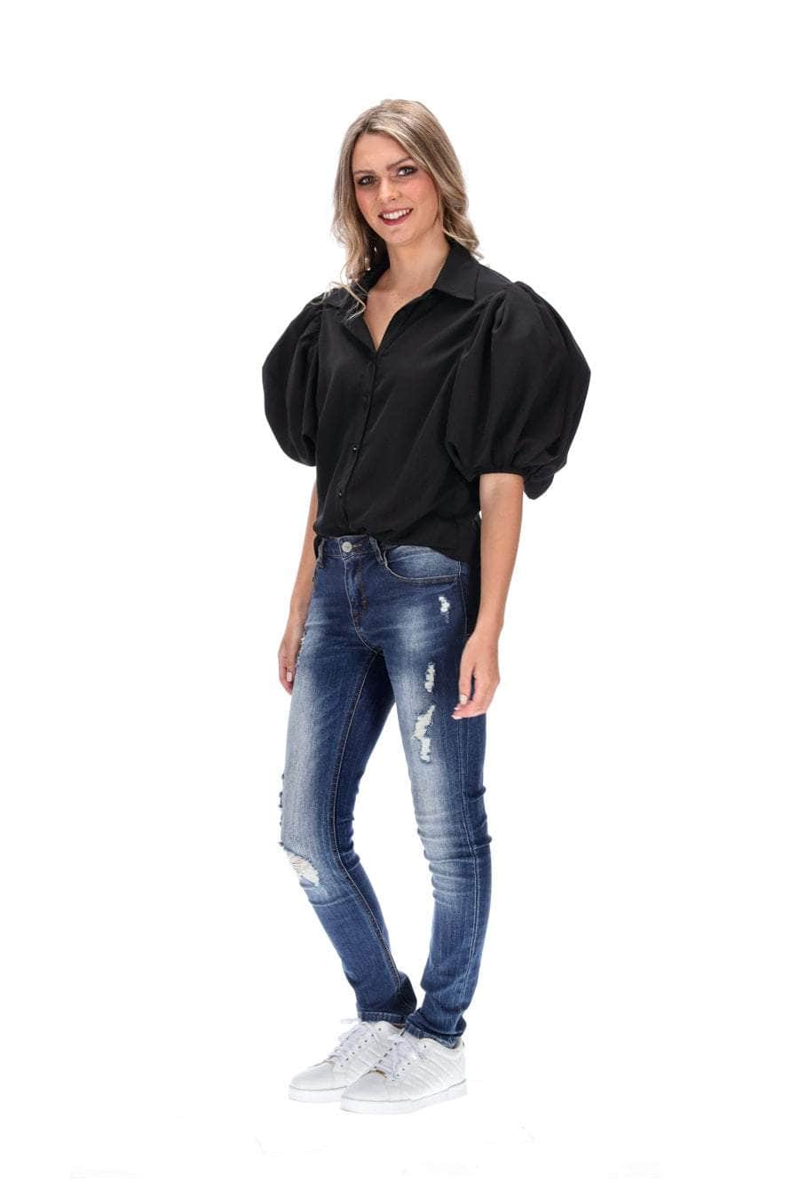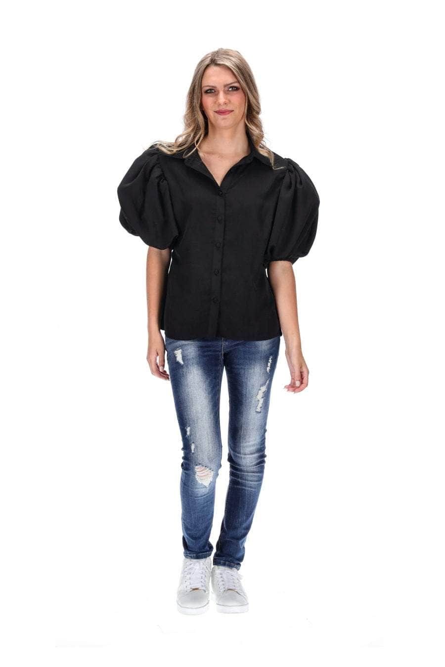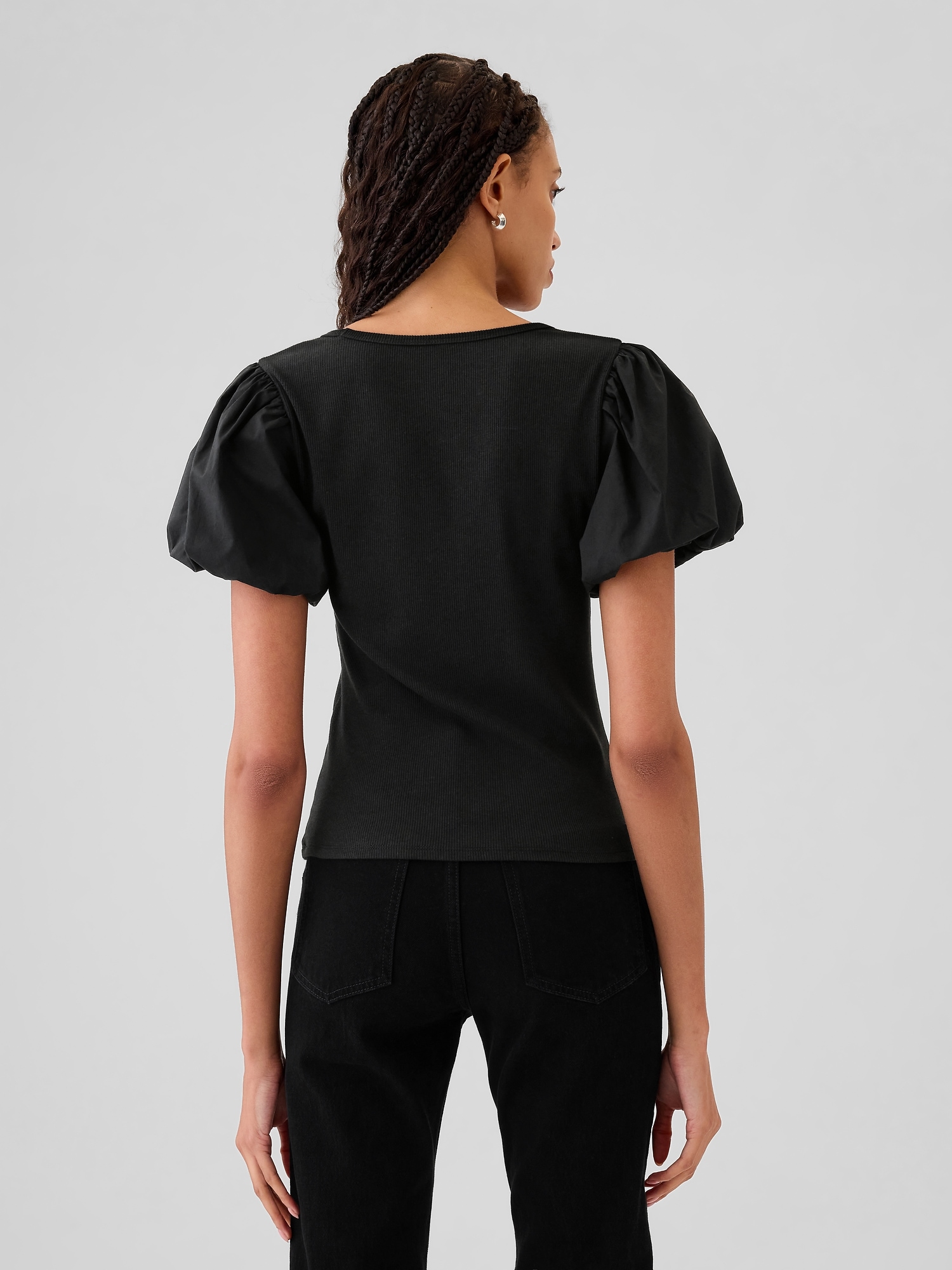black puff sleeve tee