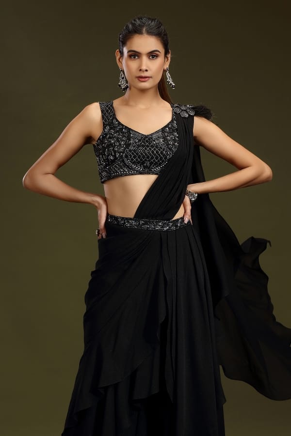 black readymade saree blouse