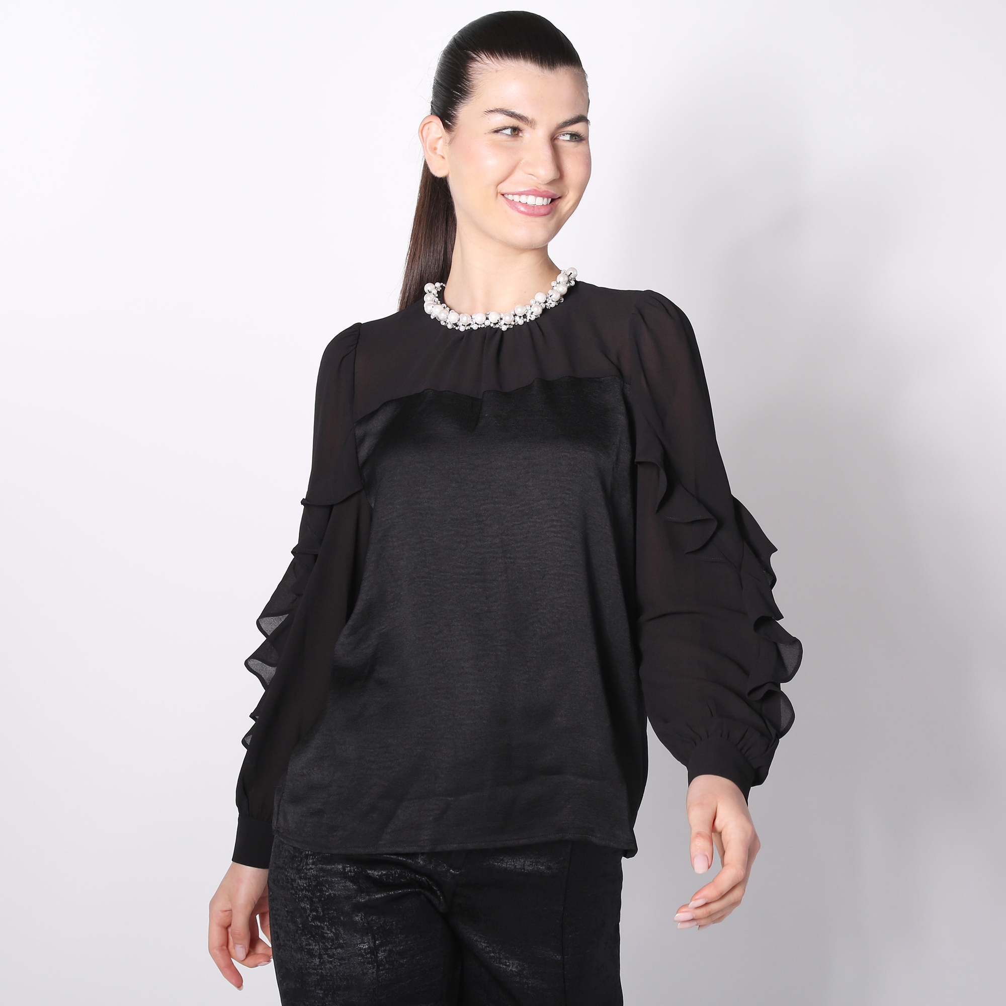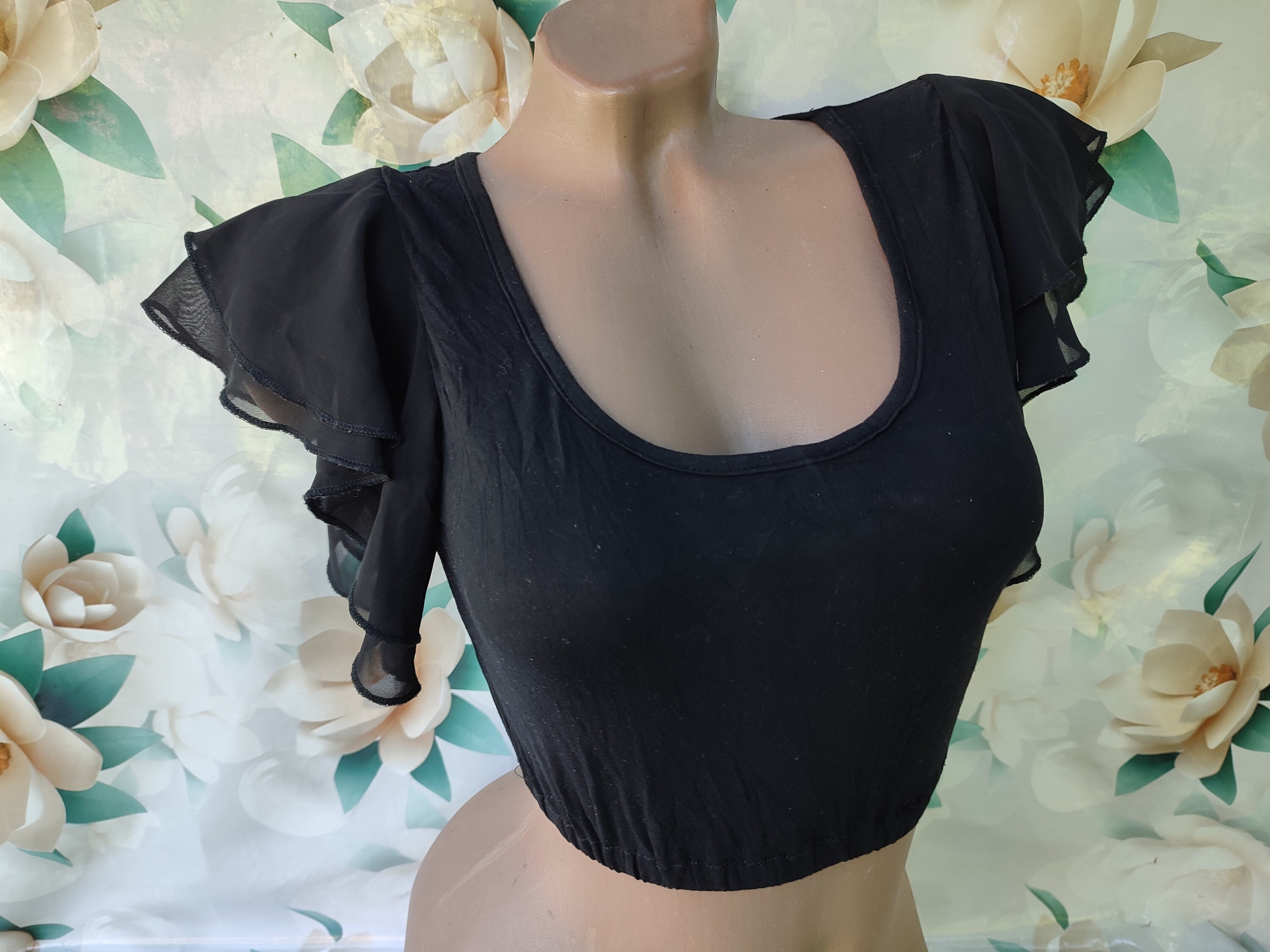 black ruffle sleeve top