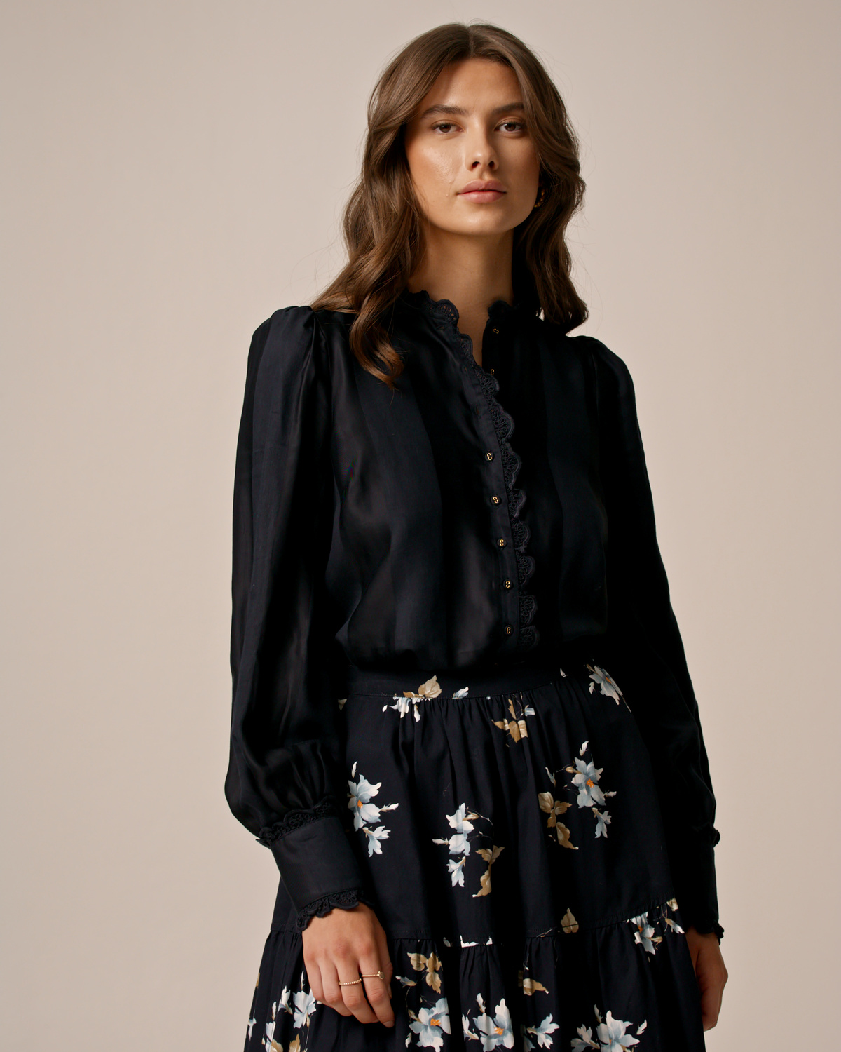 black ruffled blouse