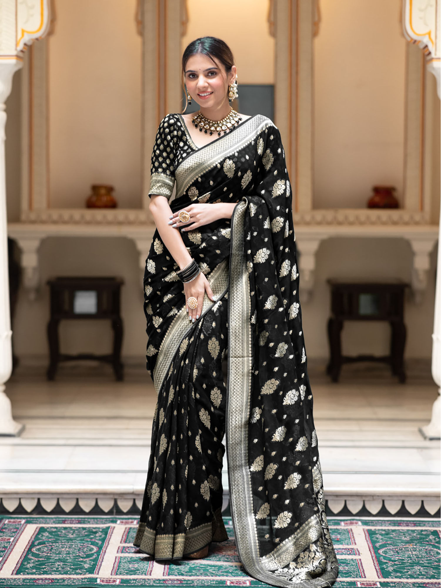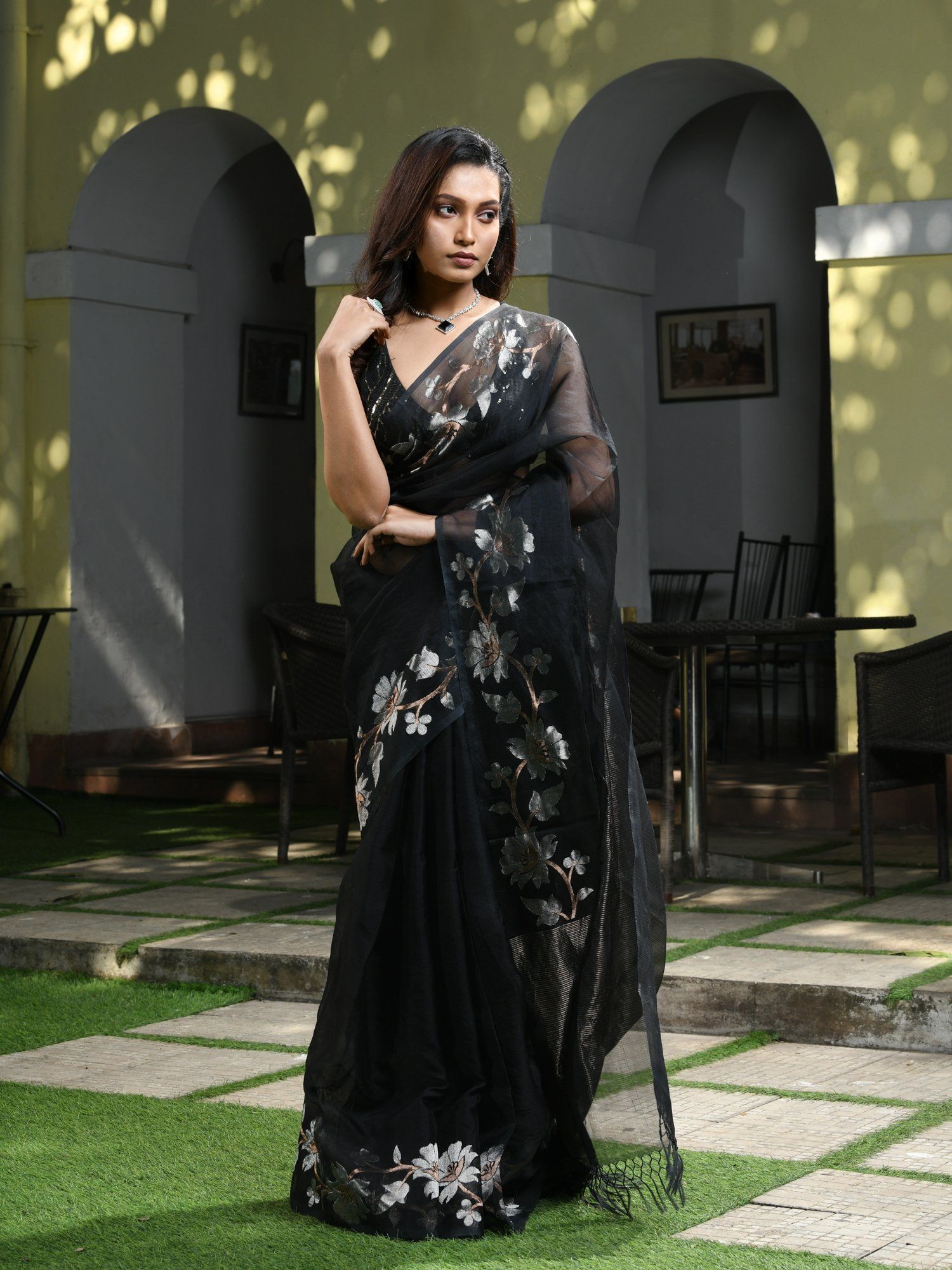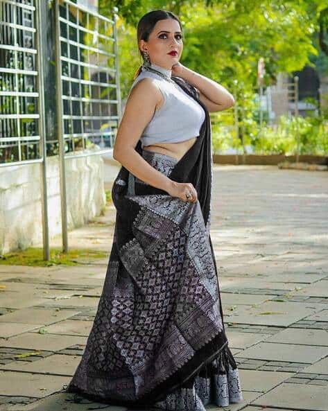 black saree with white blouse