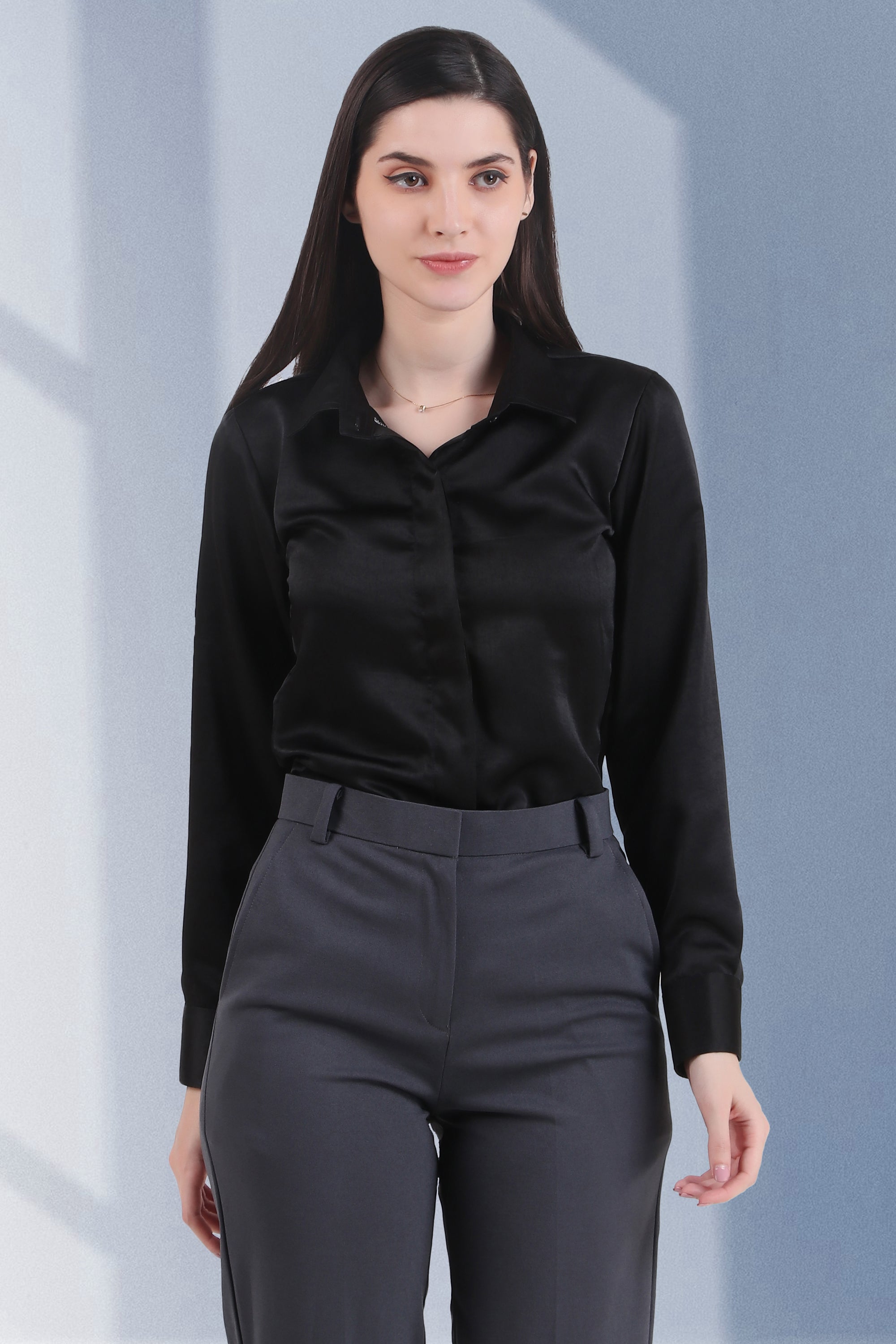 black satin button down
