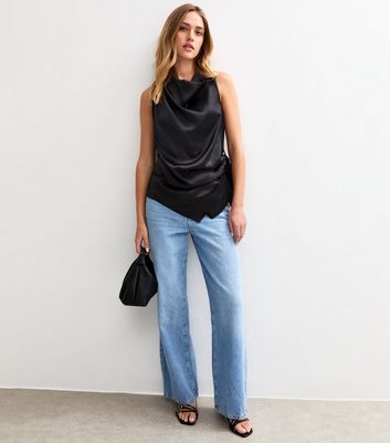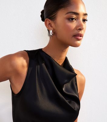black satin sleeveless top