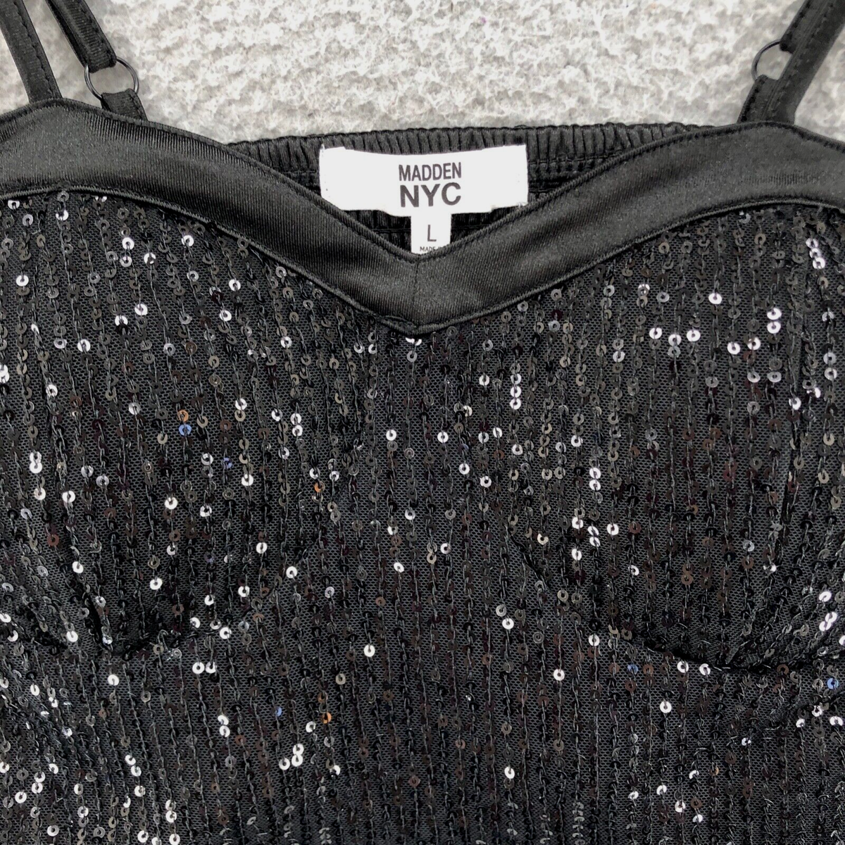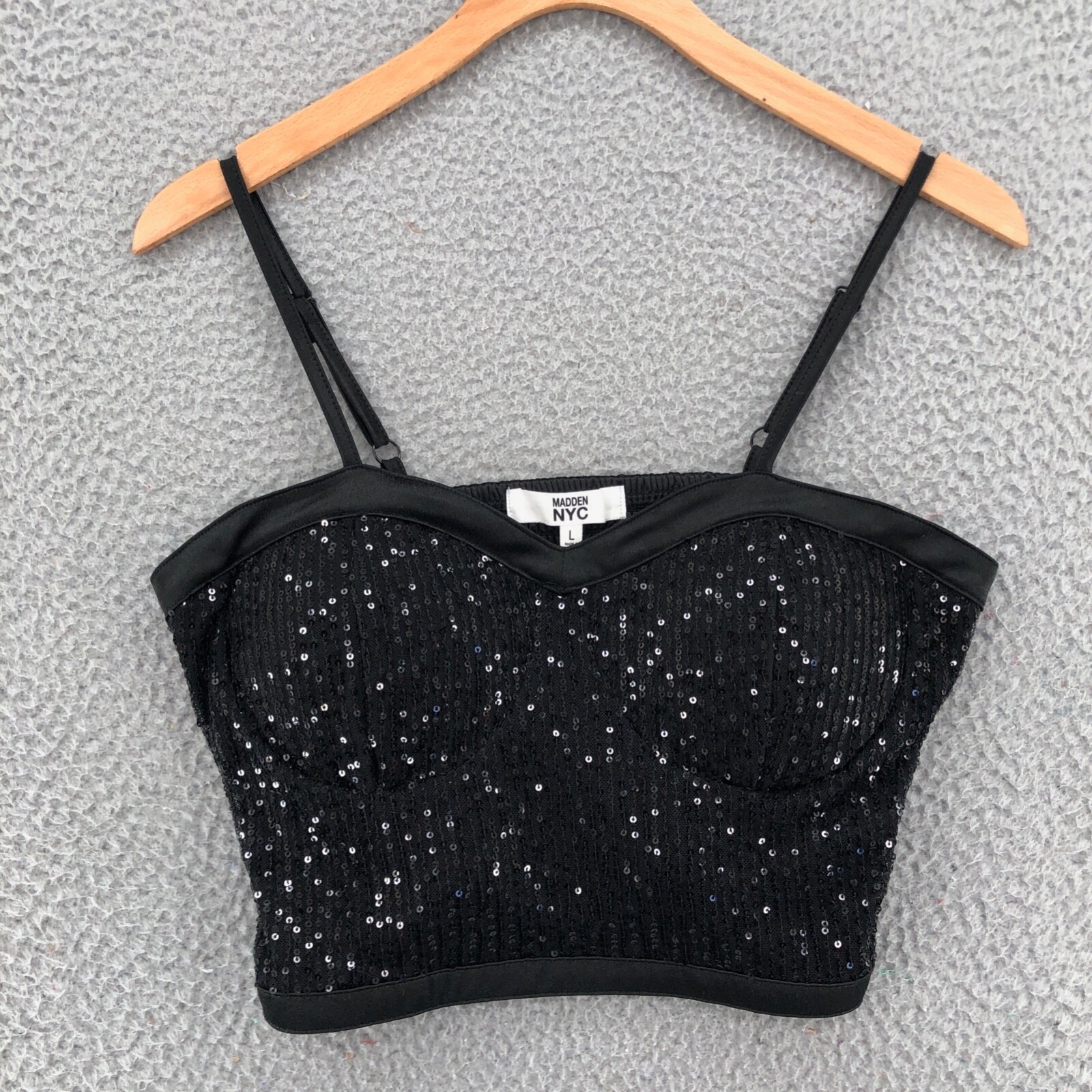 black sequin bustier top
