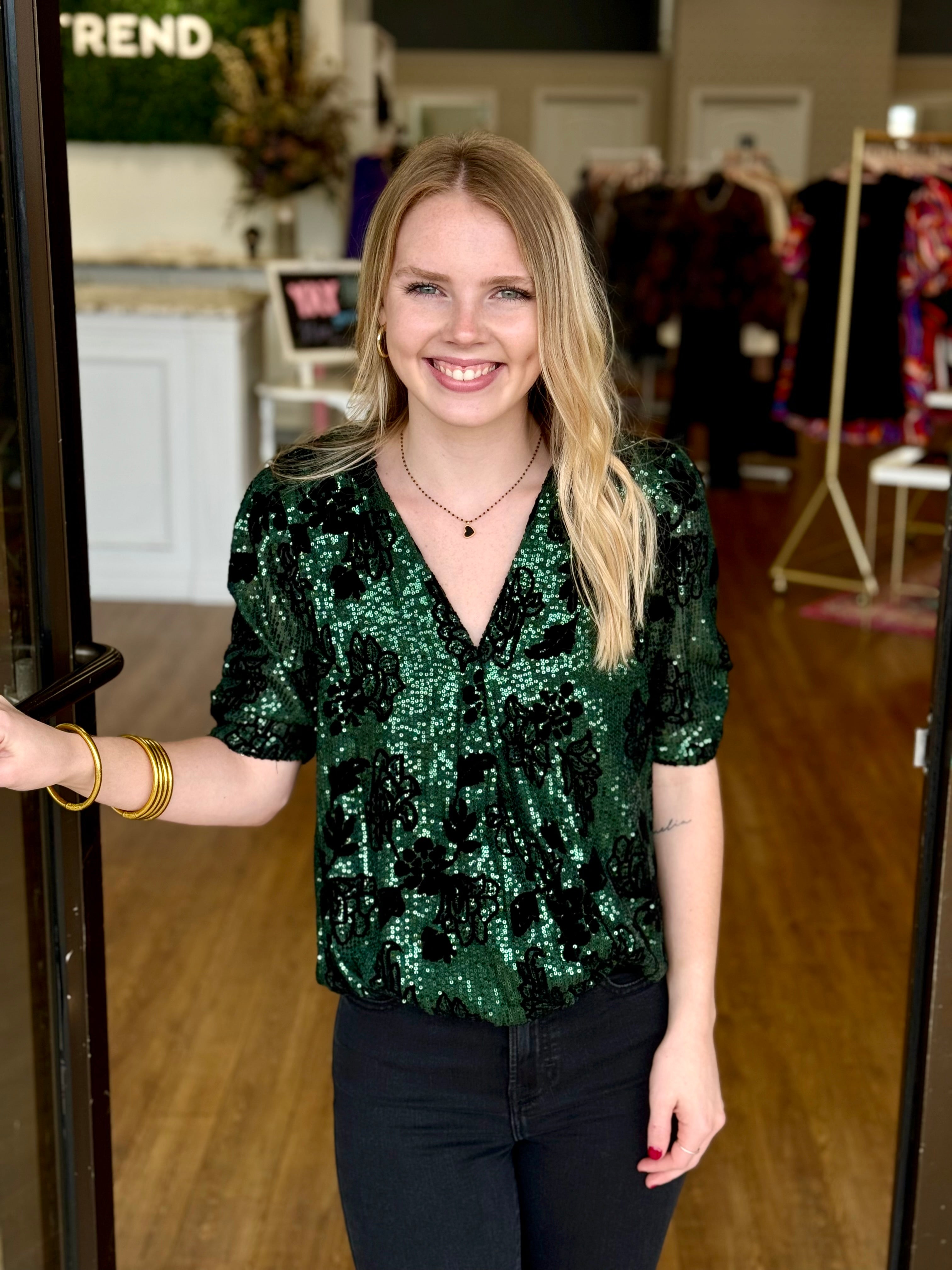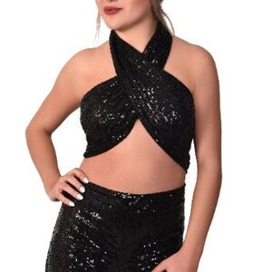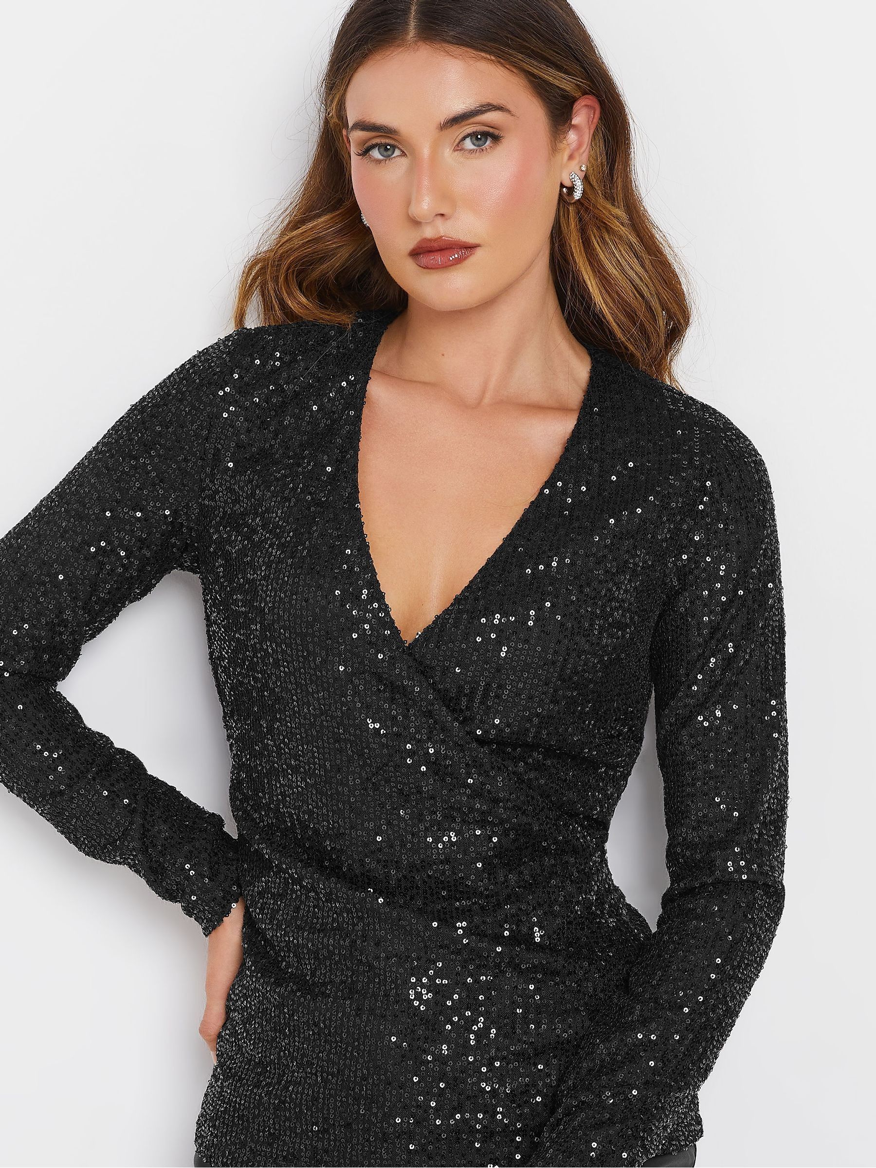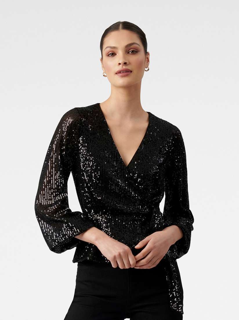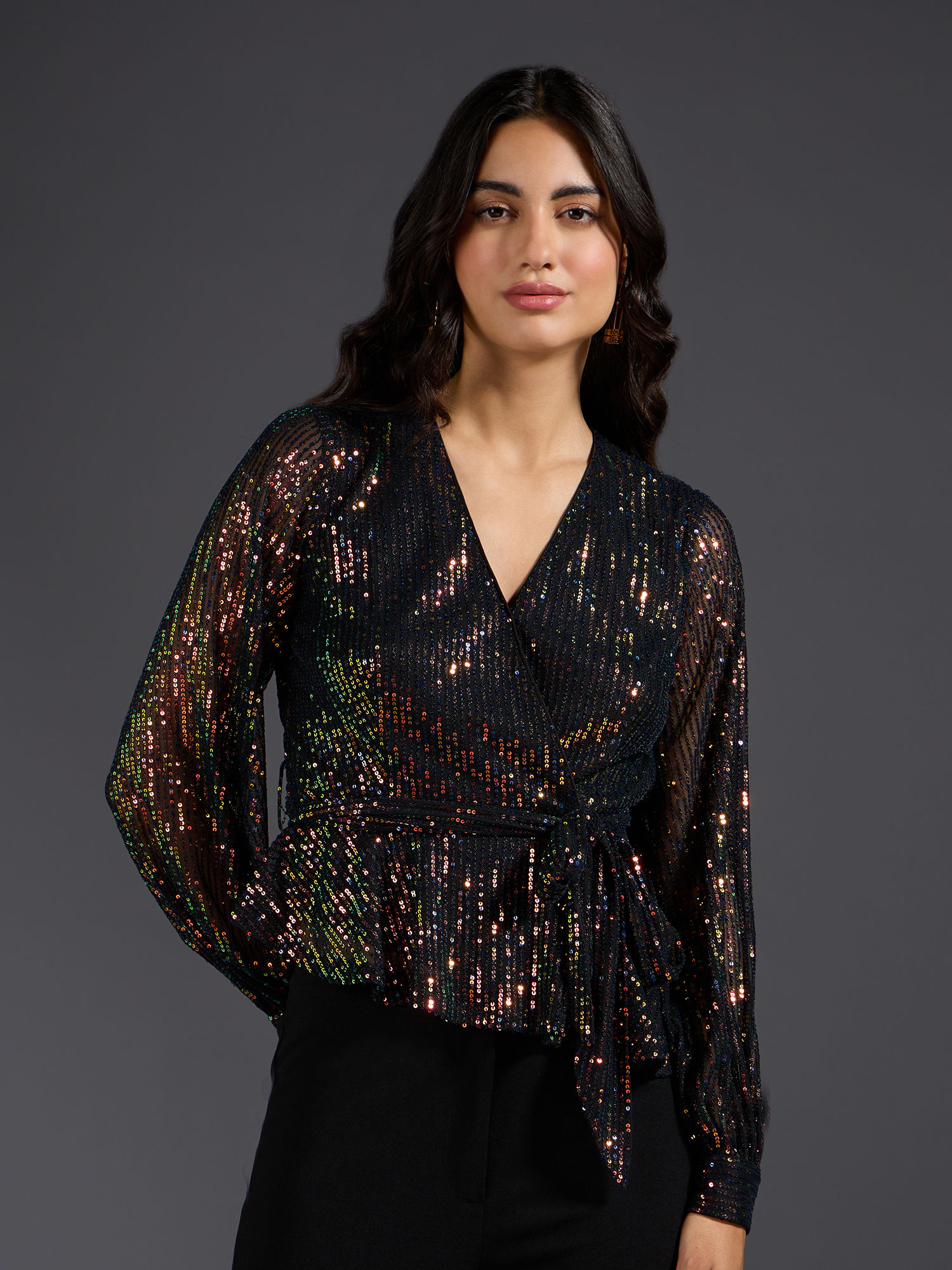 black sequin wrap top