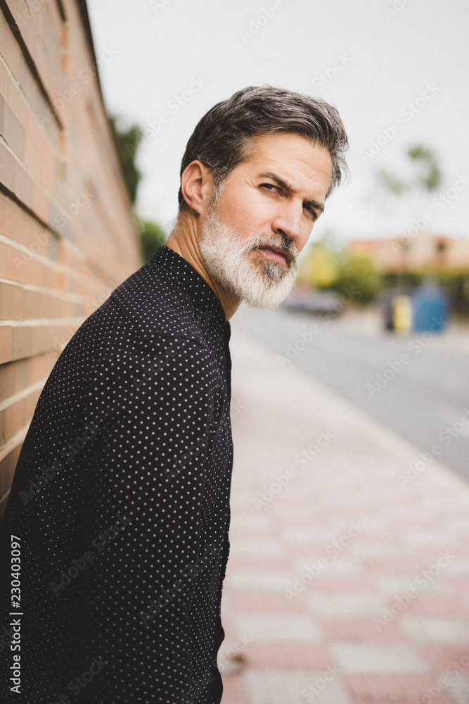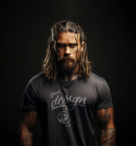 black shirt with beard
