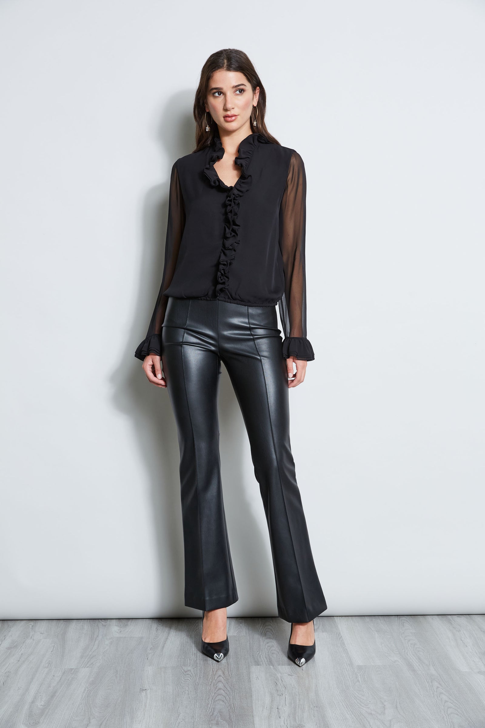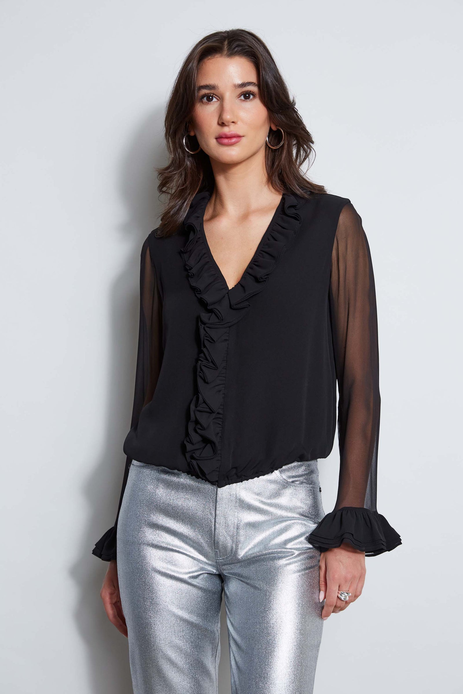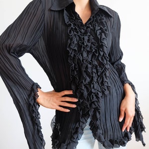 black silk ruffle blouse