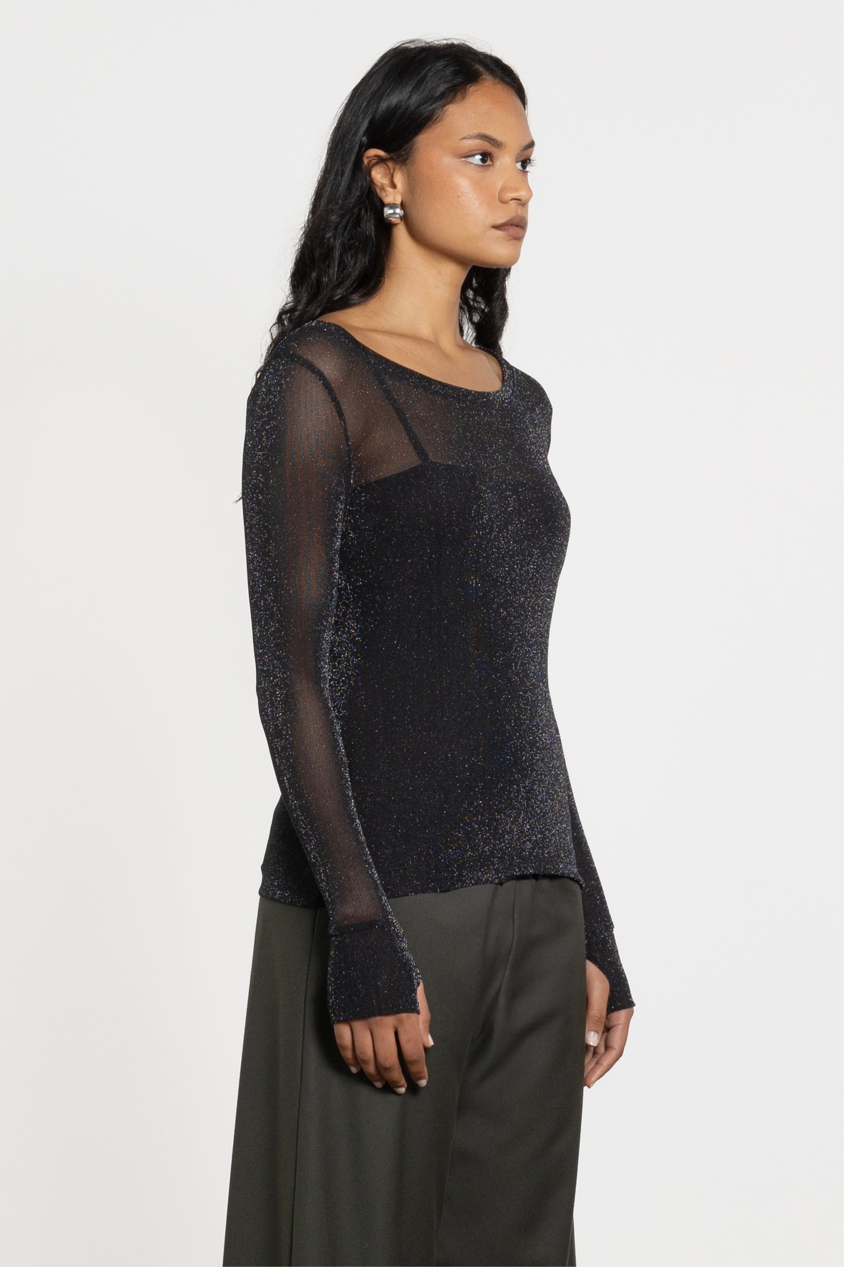 black sparkly mesh top