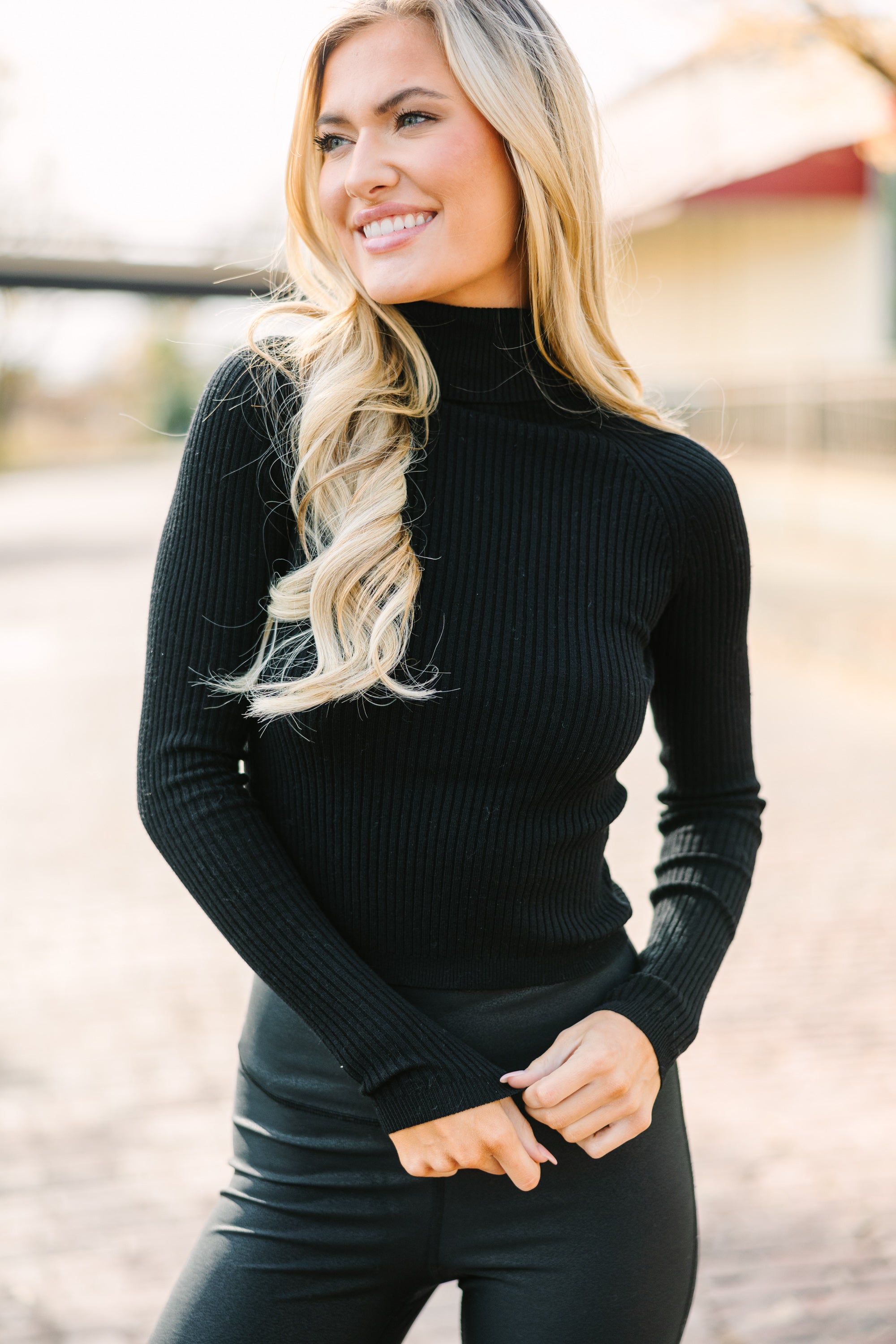 black tight turtleneck top