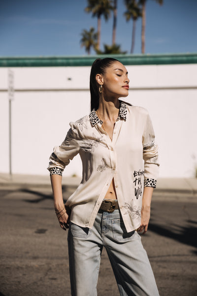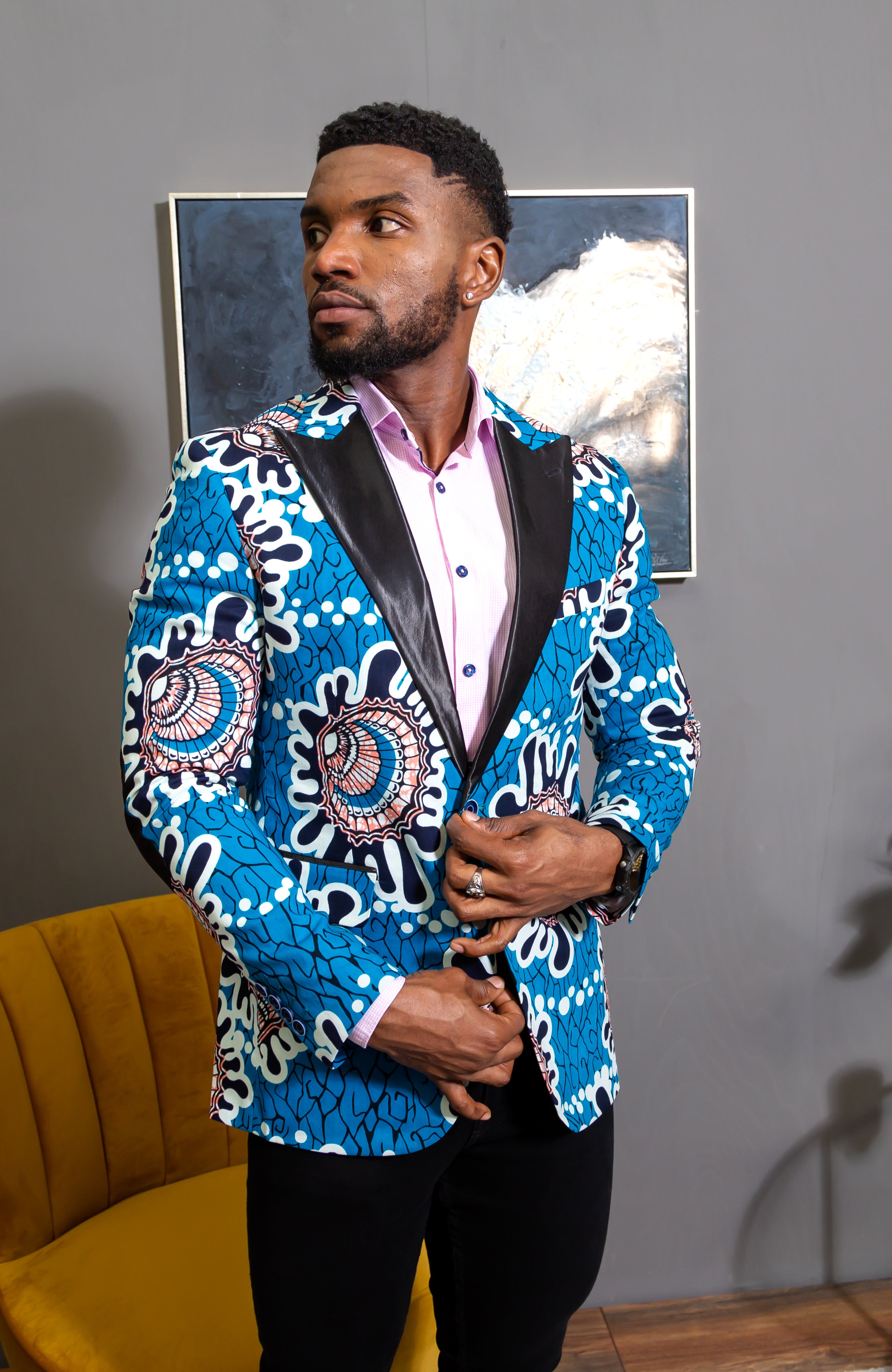 blazer with printed shirt
