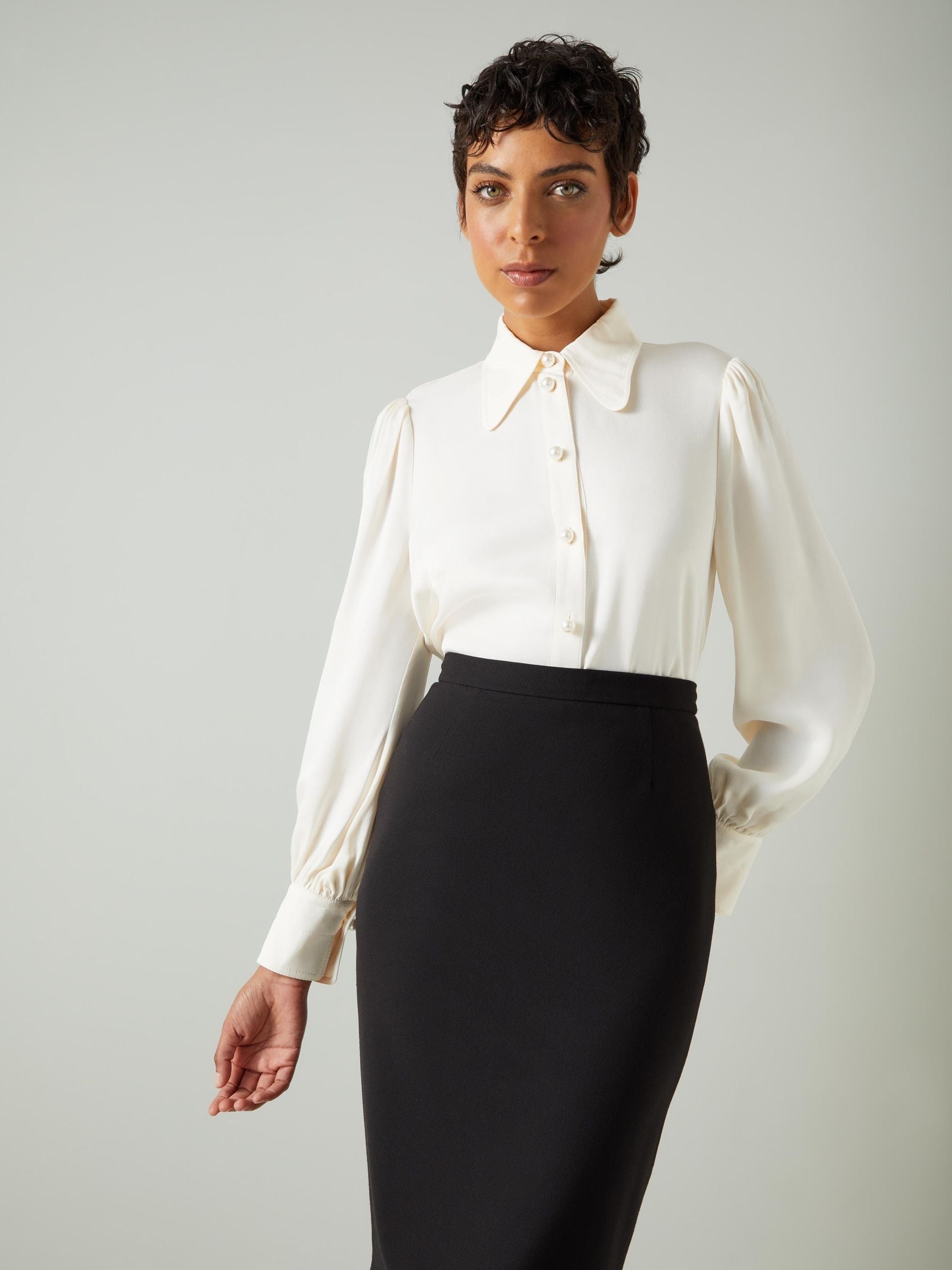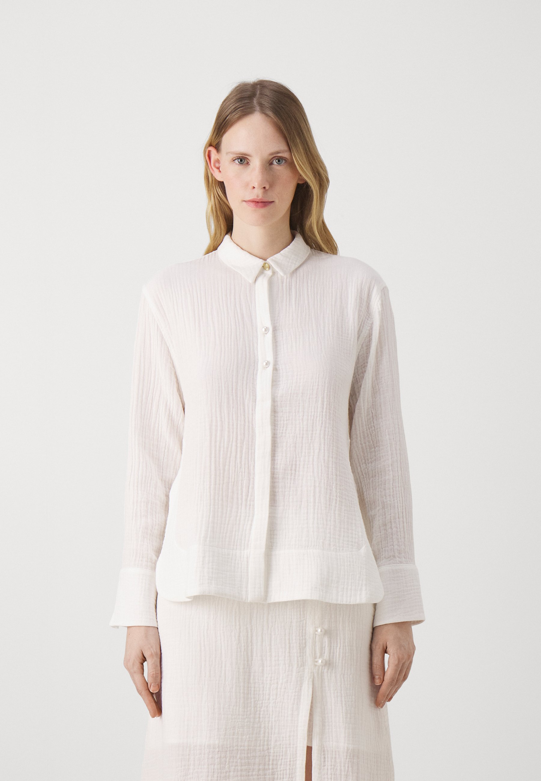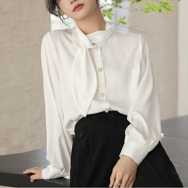 blouse with pearl buttons