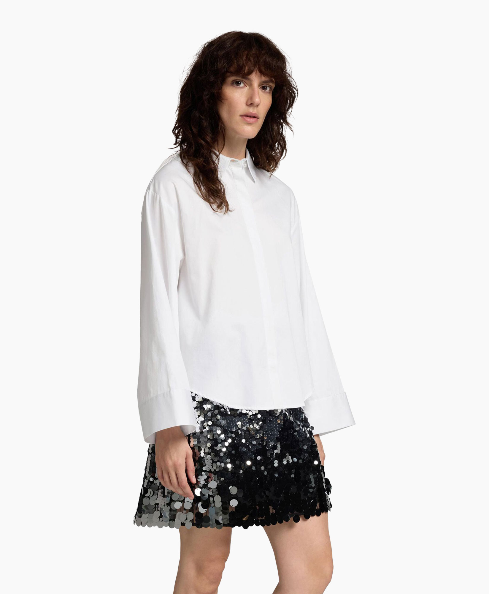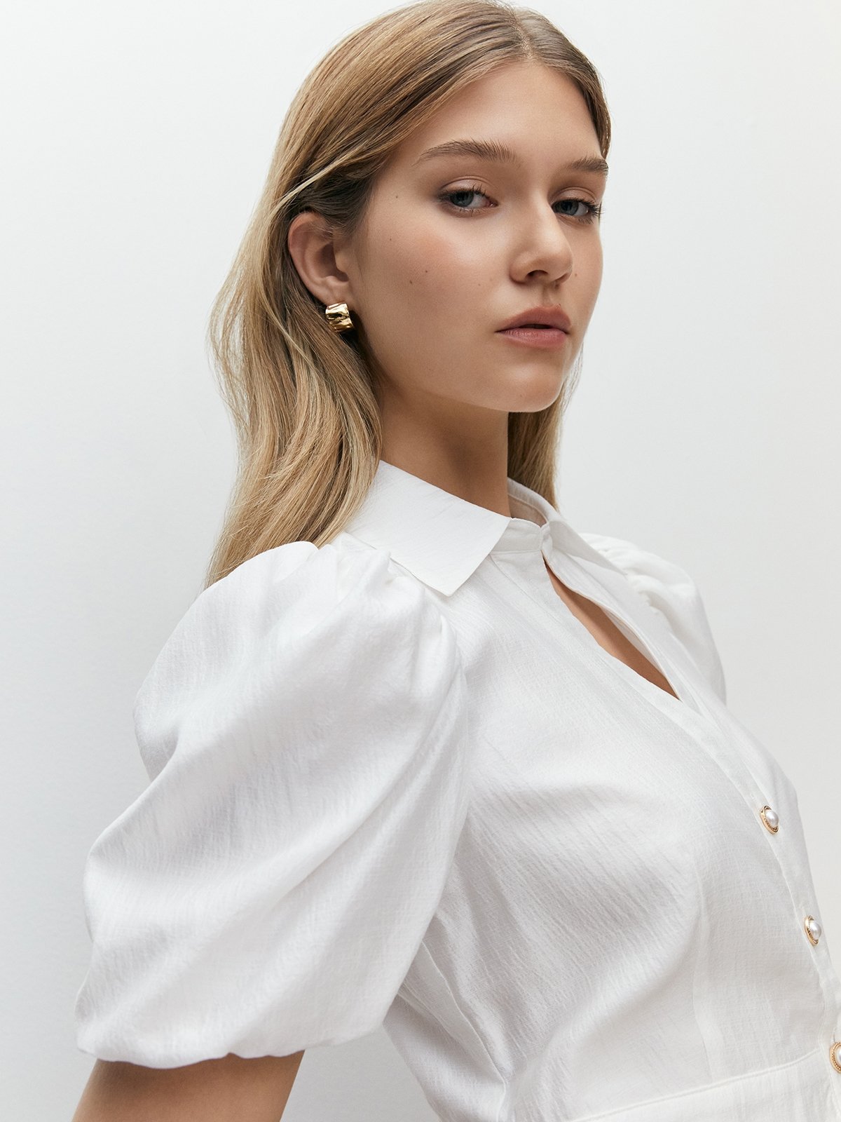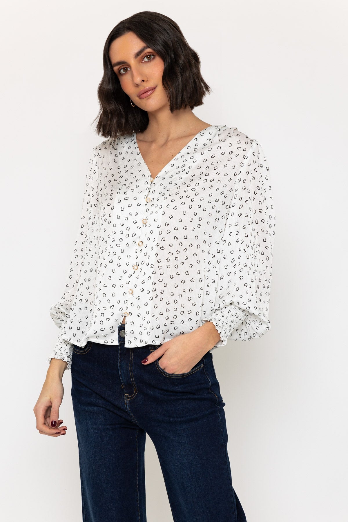 blouse with pearl buttons
