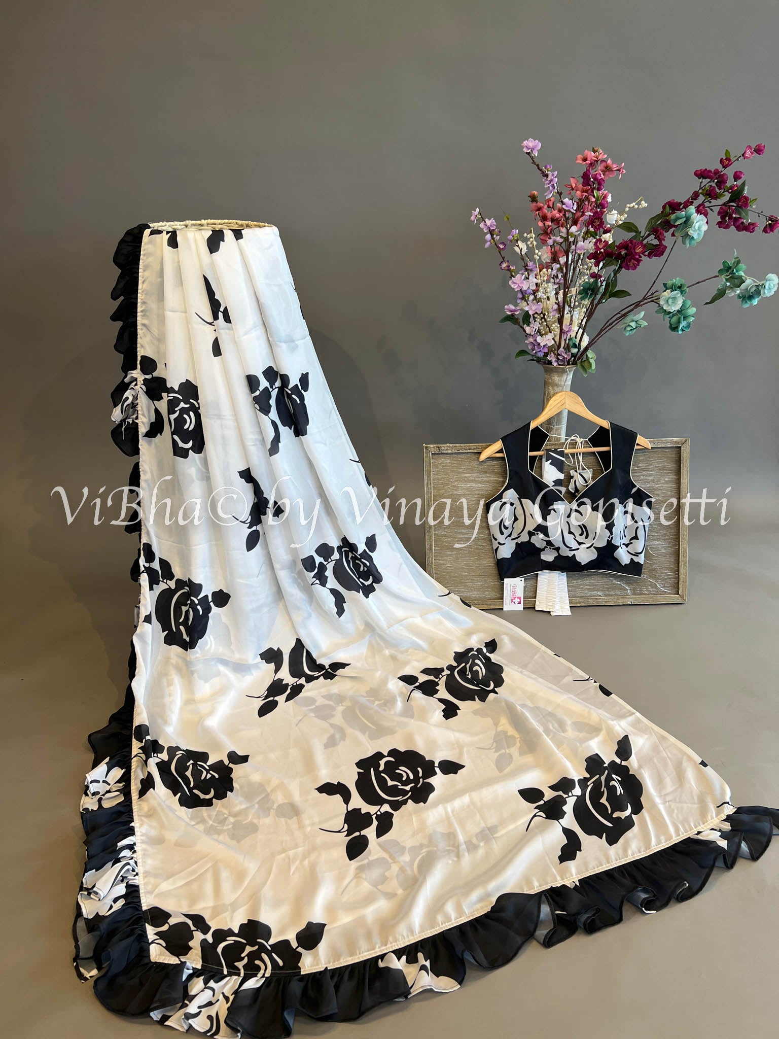 blouse with ruffle saree