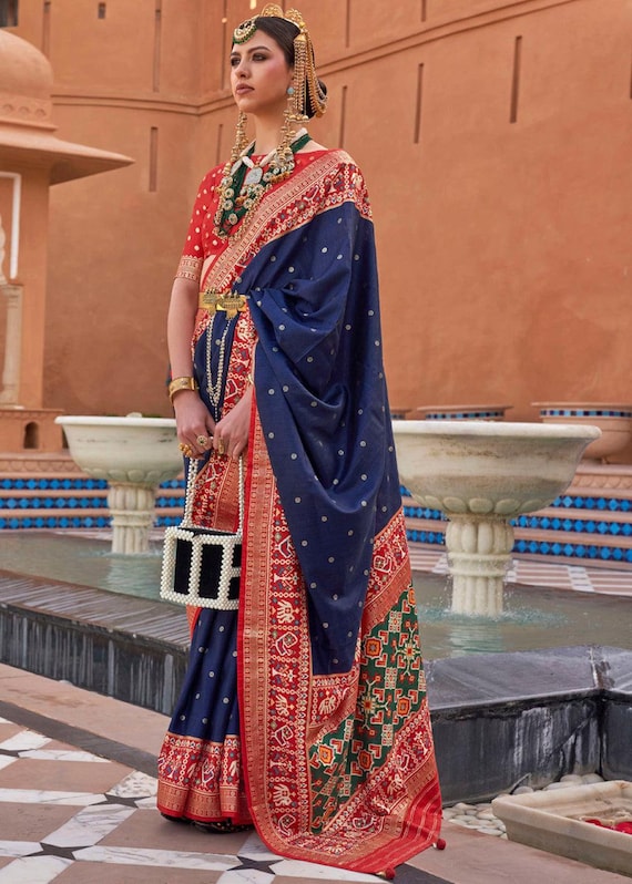blue blouse red saree