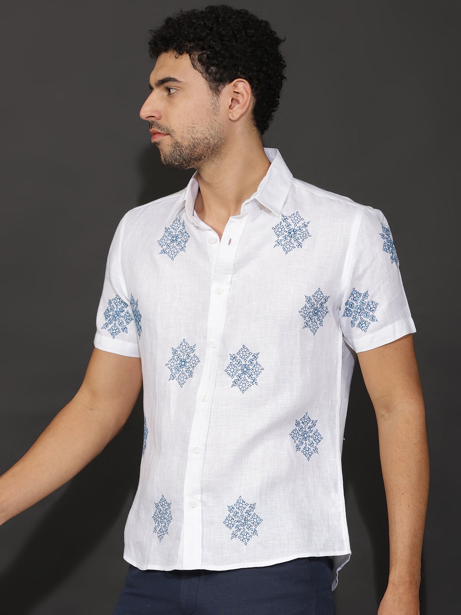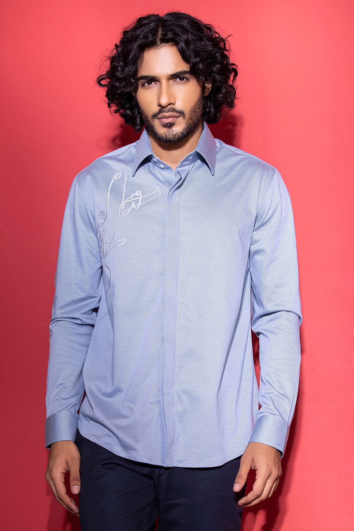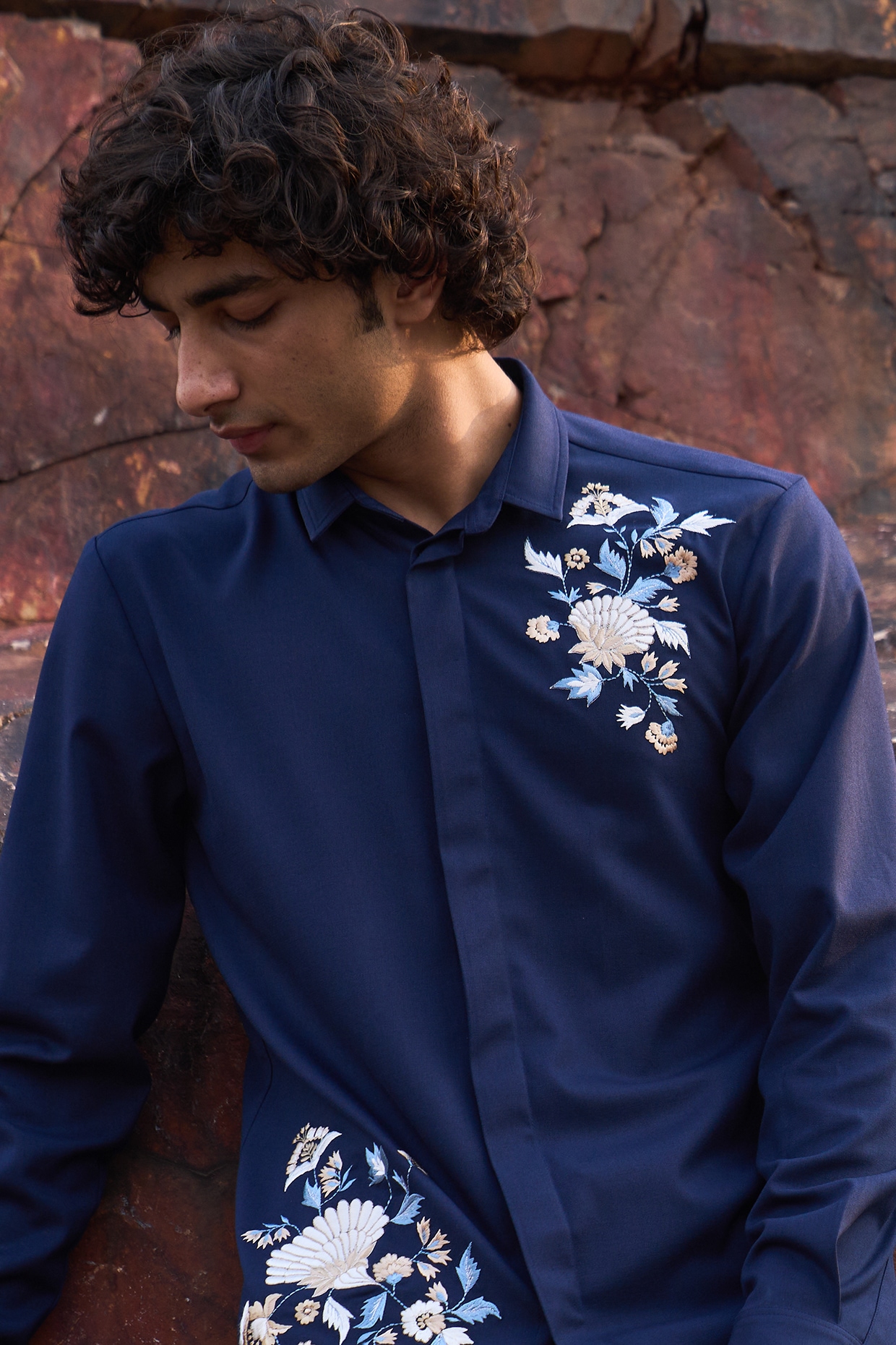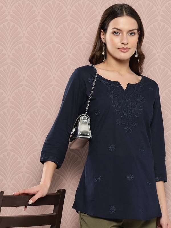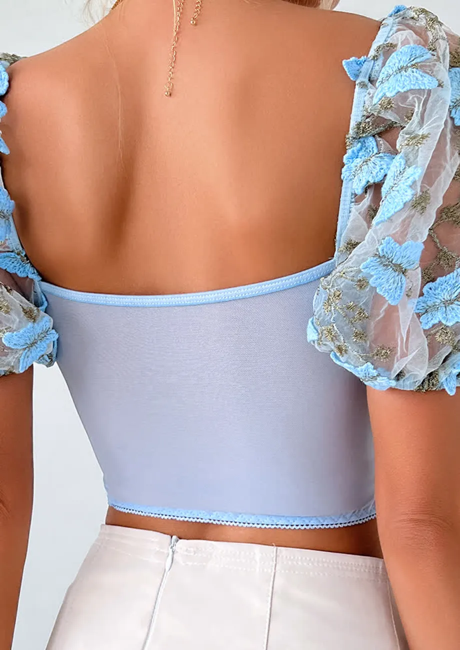 blue embroidered top