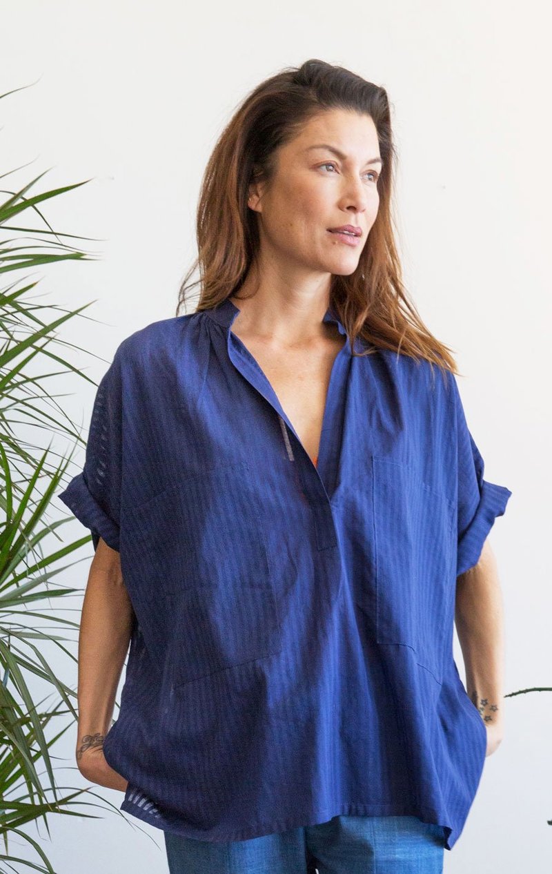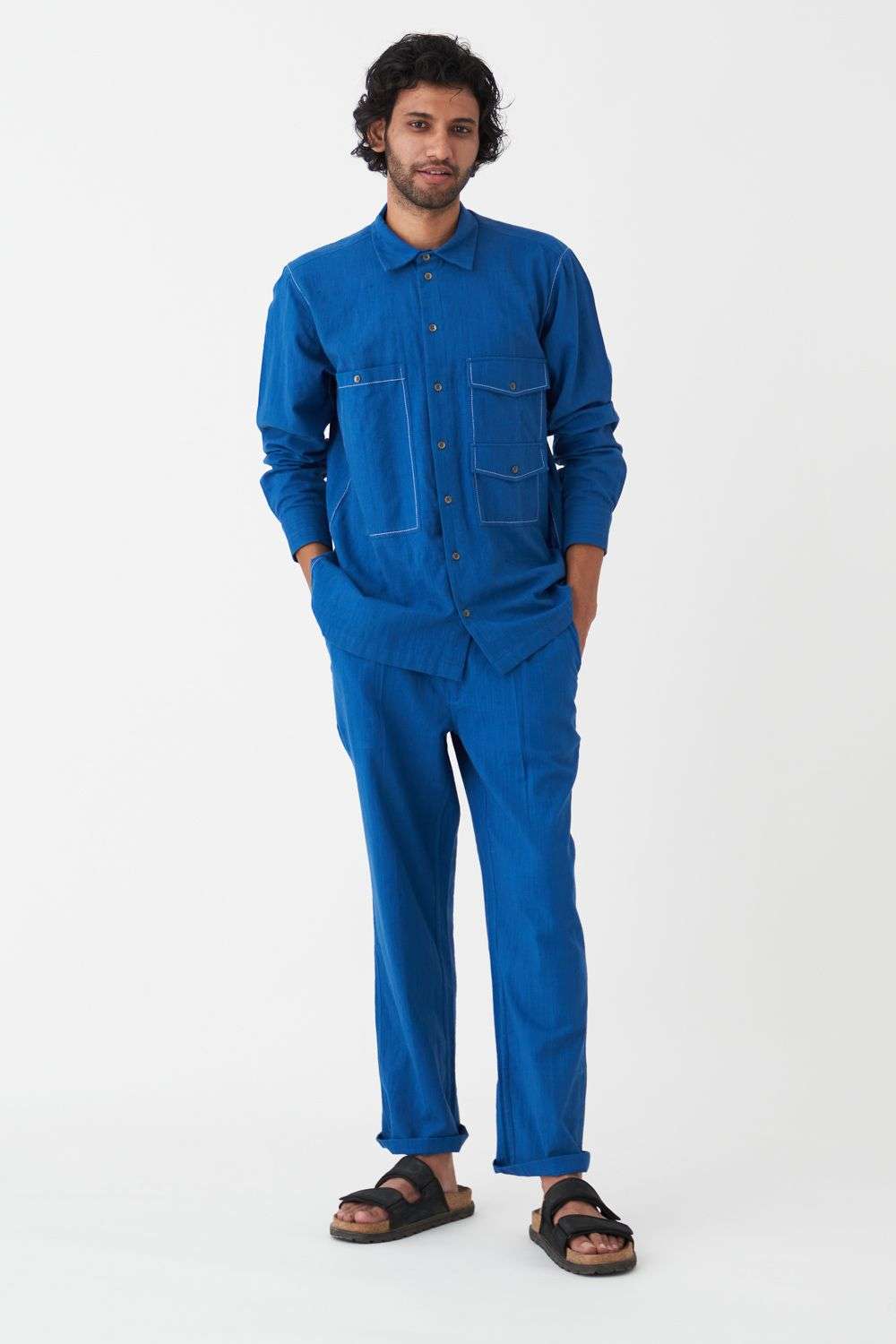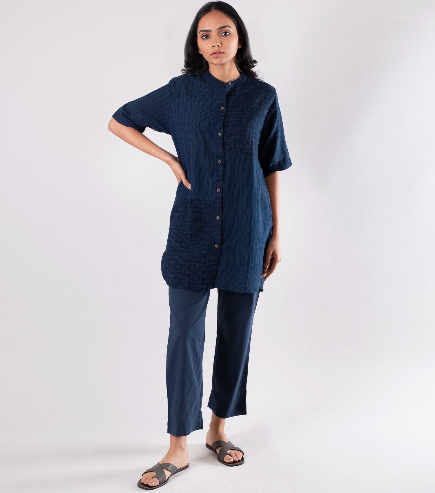 blue khadi shirt