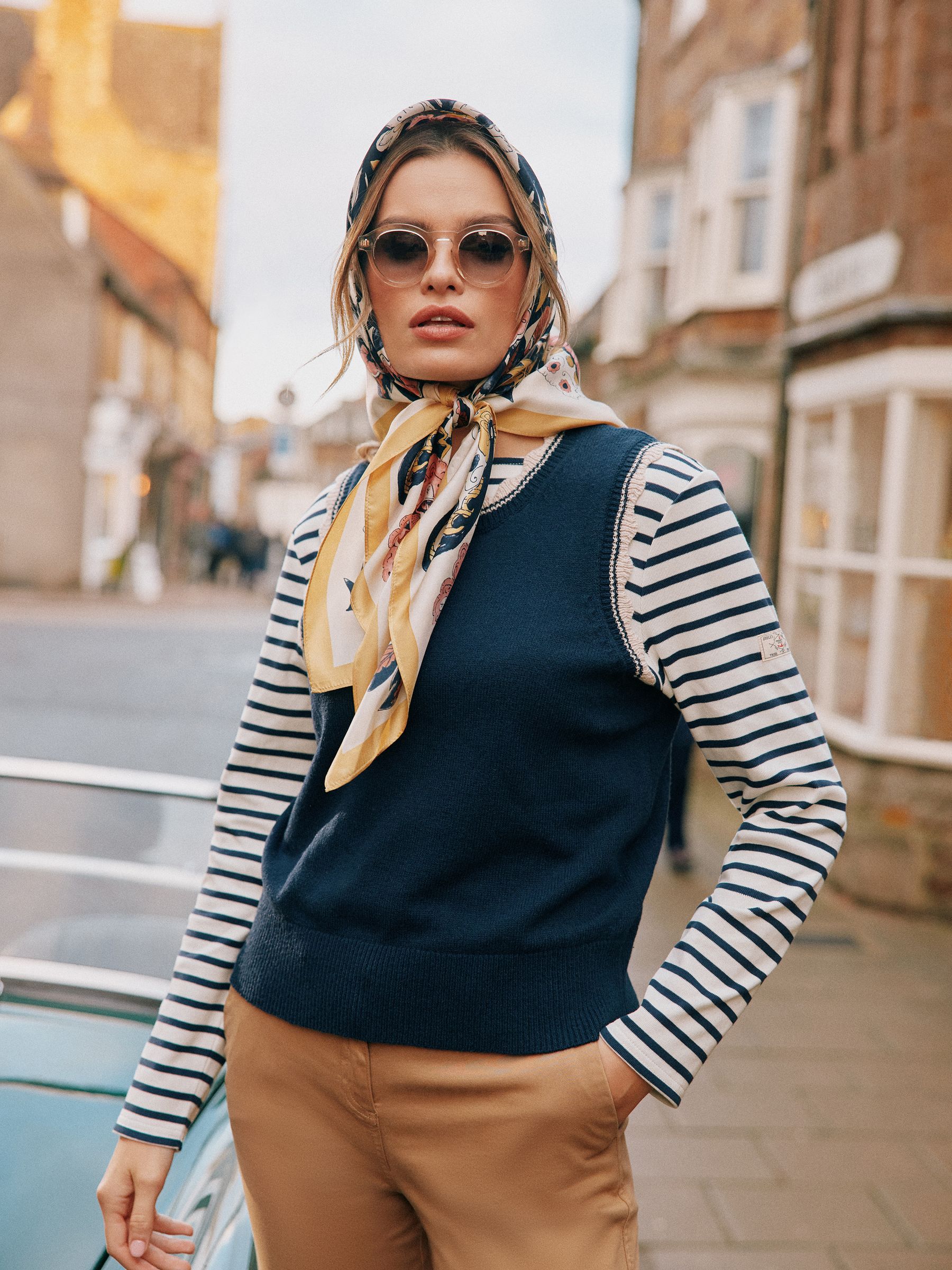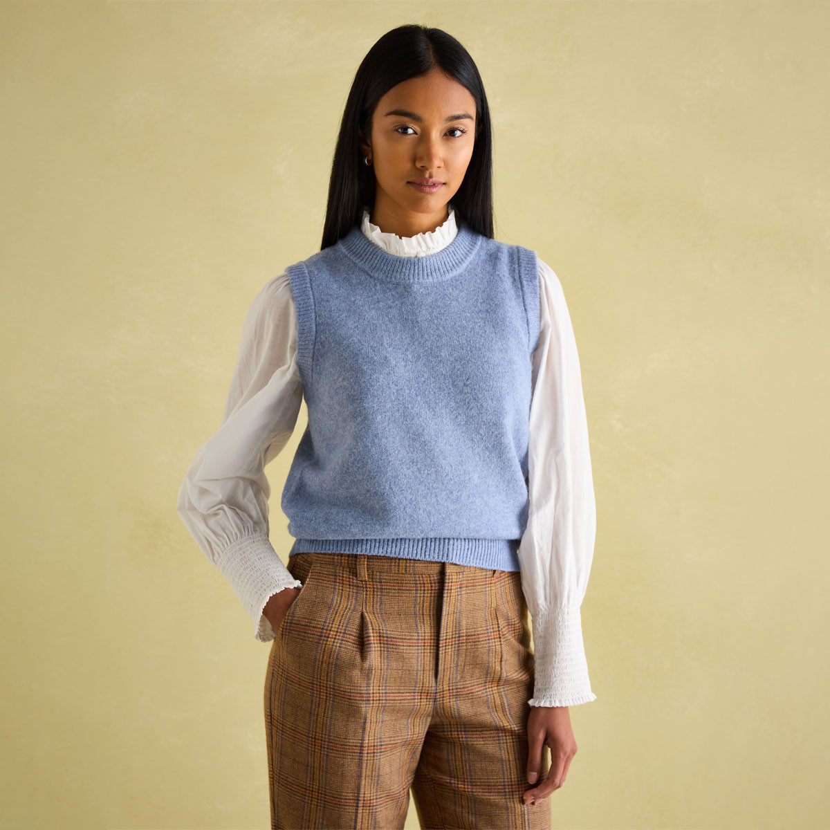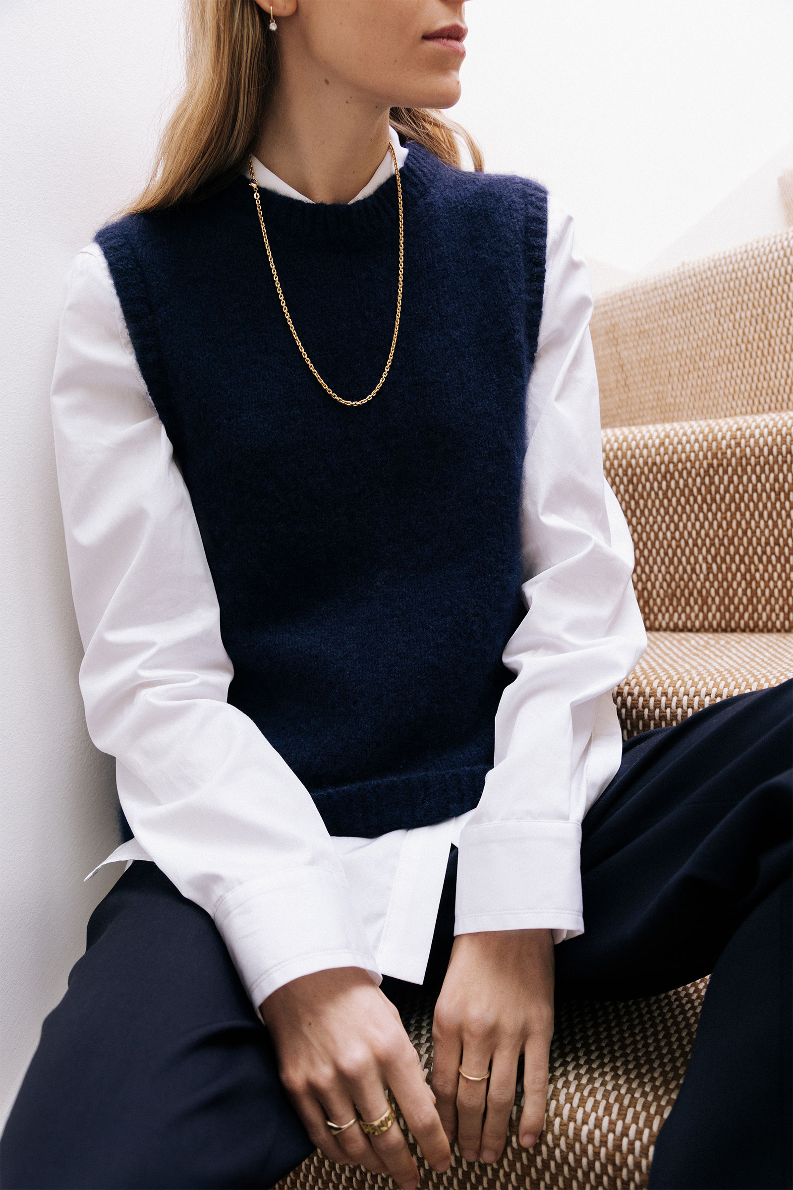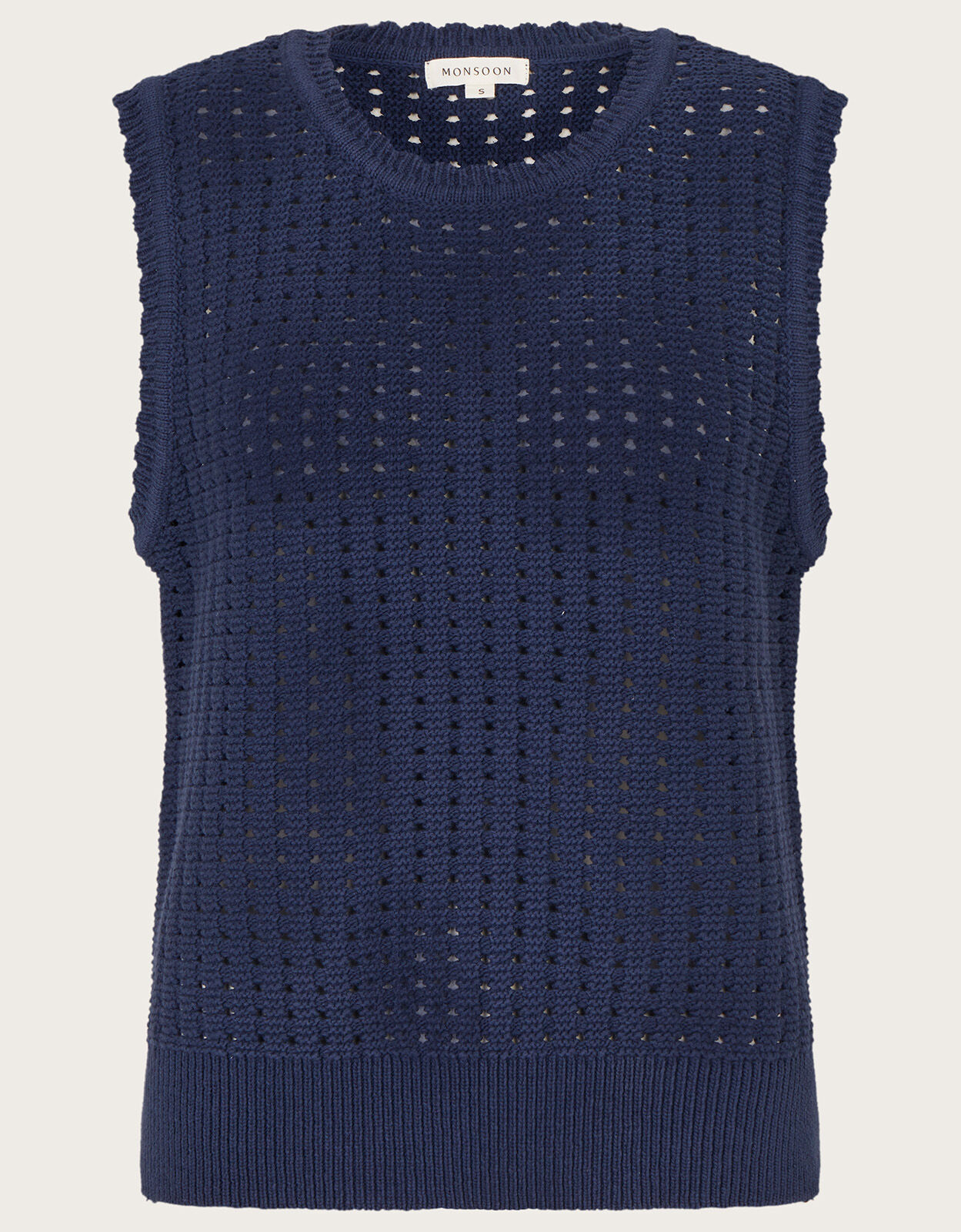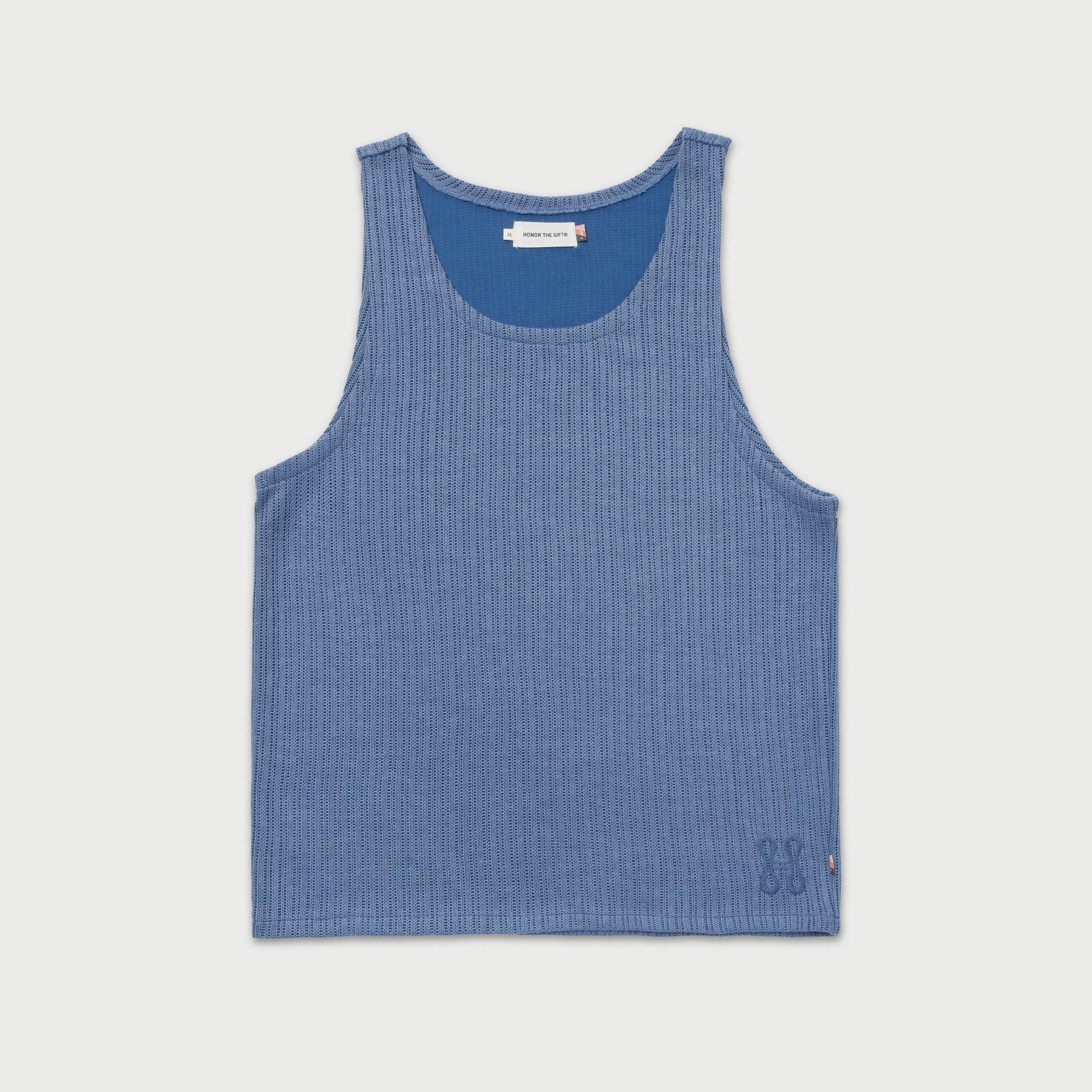 blue knitted tank top