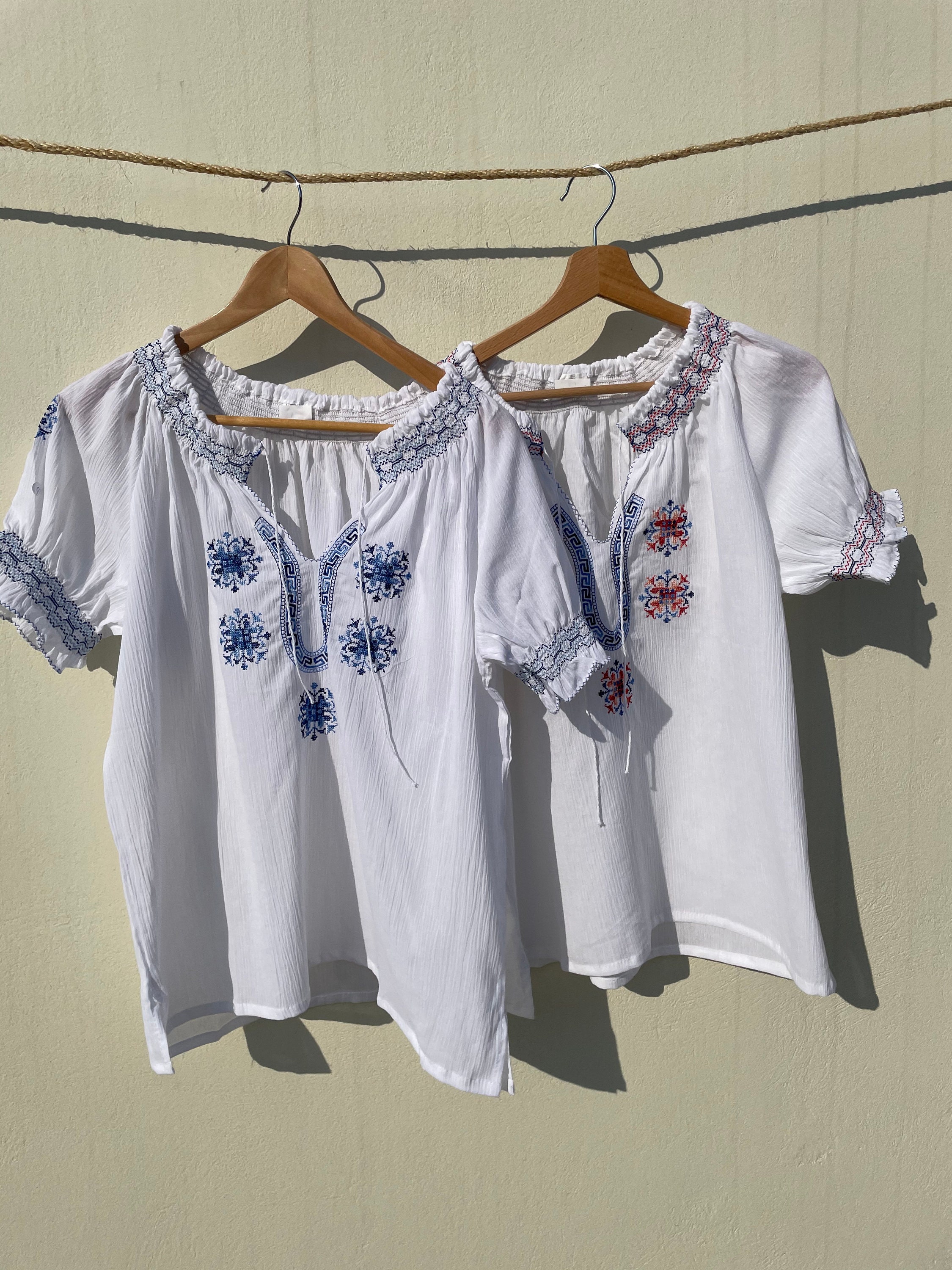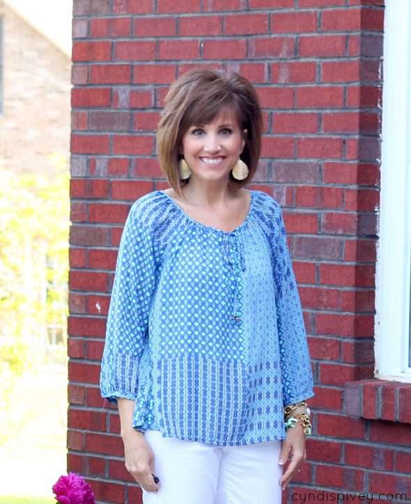 blue peasant blouse