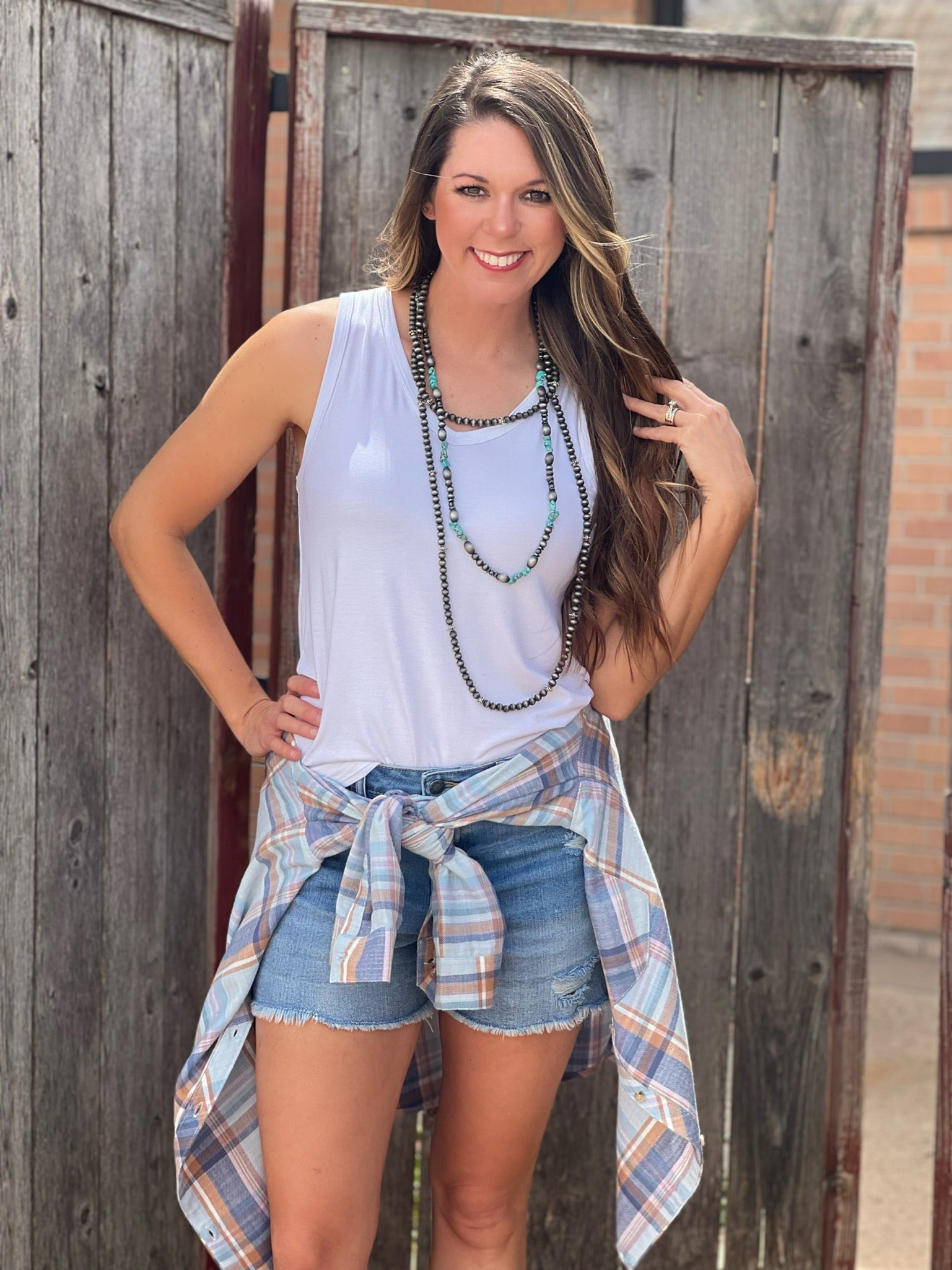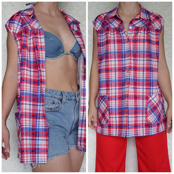 blue plaid tank top