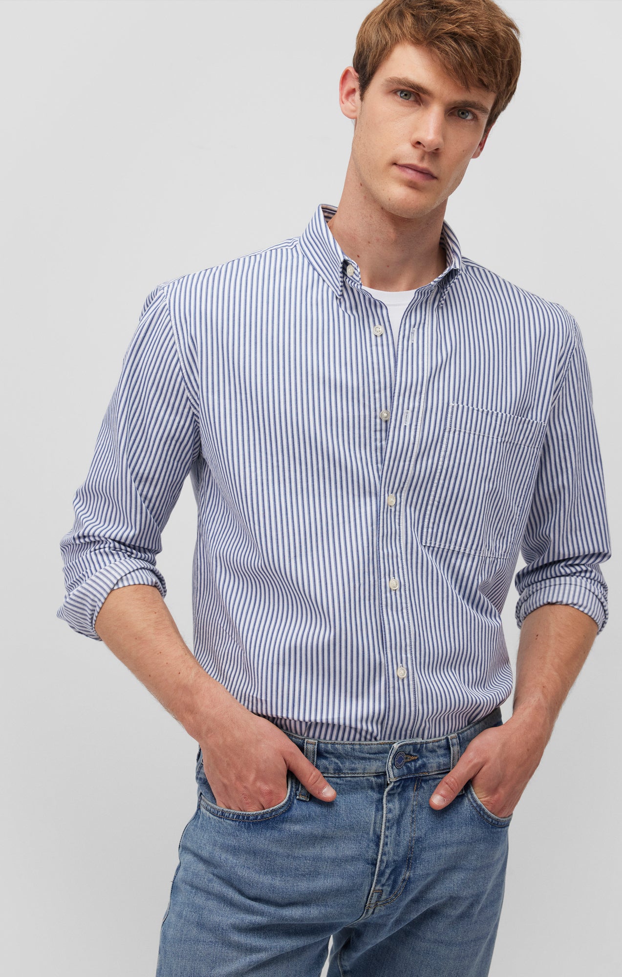 blue striped button down